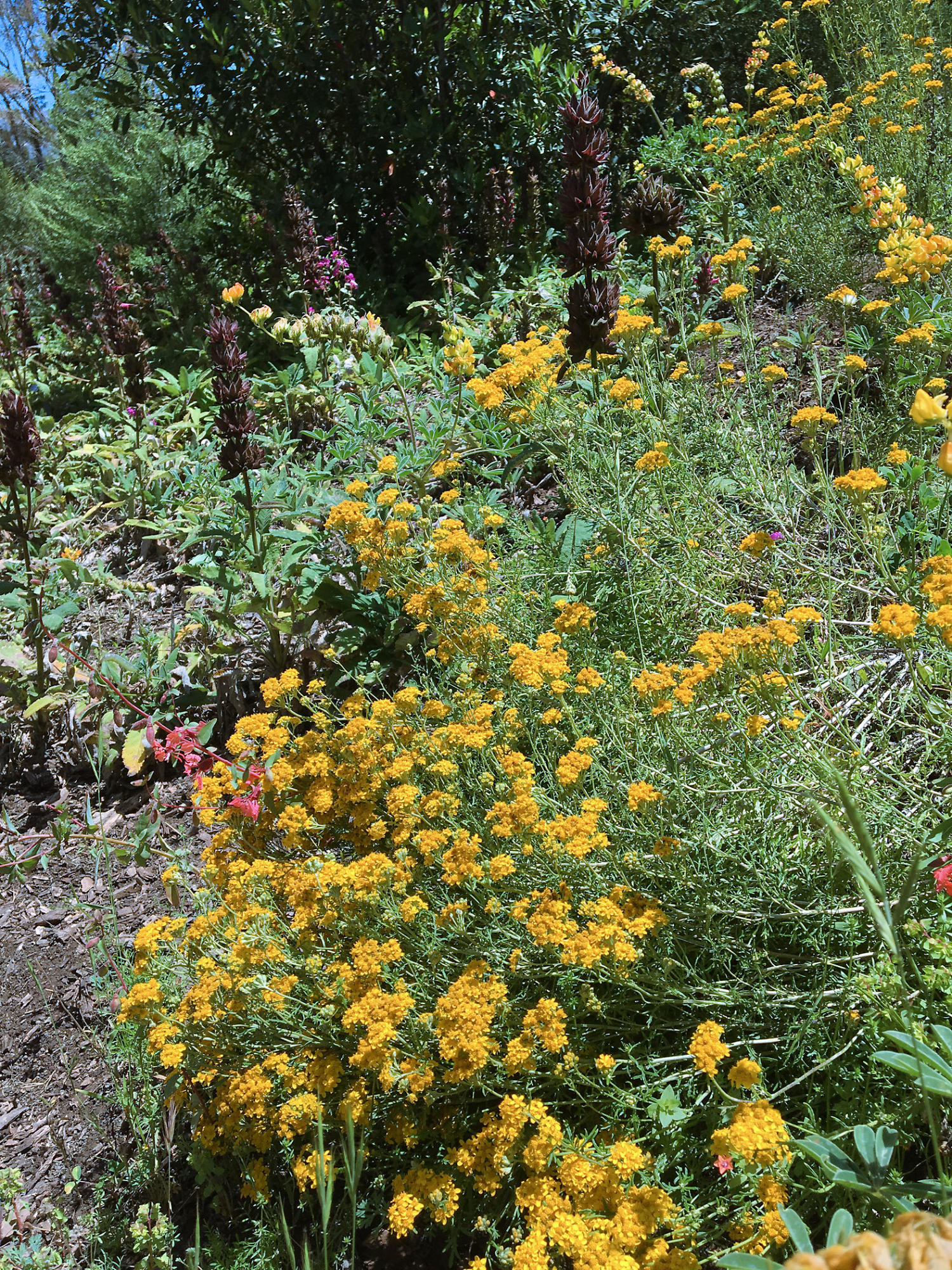Acmispon glaber (Deerweed, California Broom) wth Salvia (Sage) spathacea on SW Trail