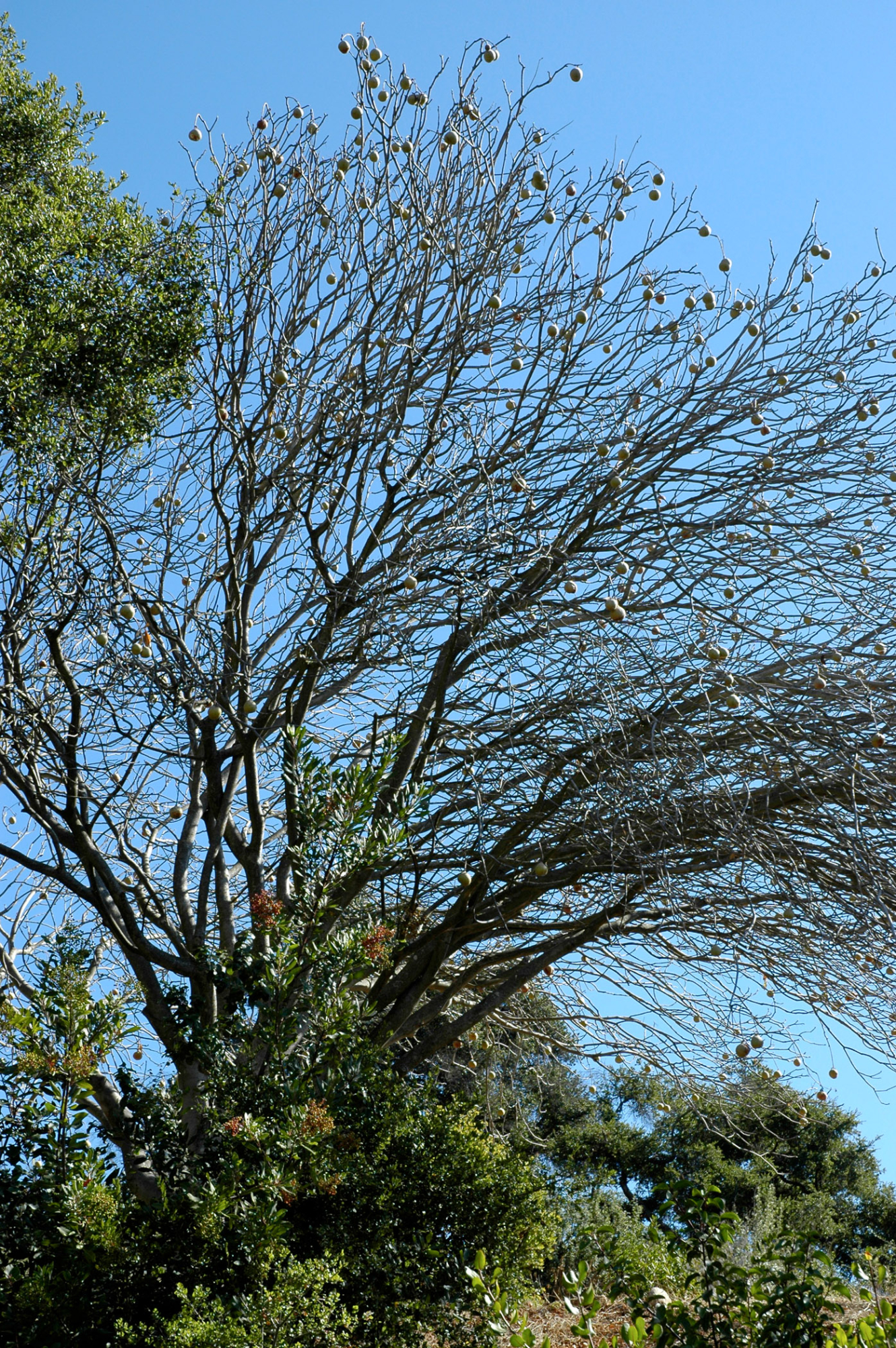 Aesculus californica in fruit, Porter Trail slope above Mission Canyon Road