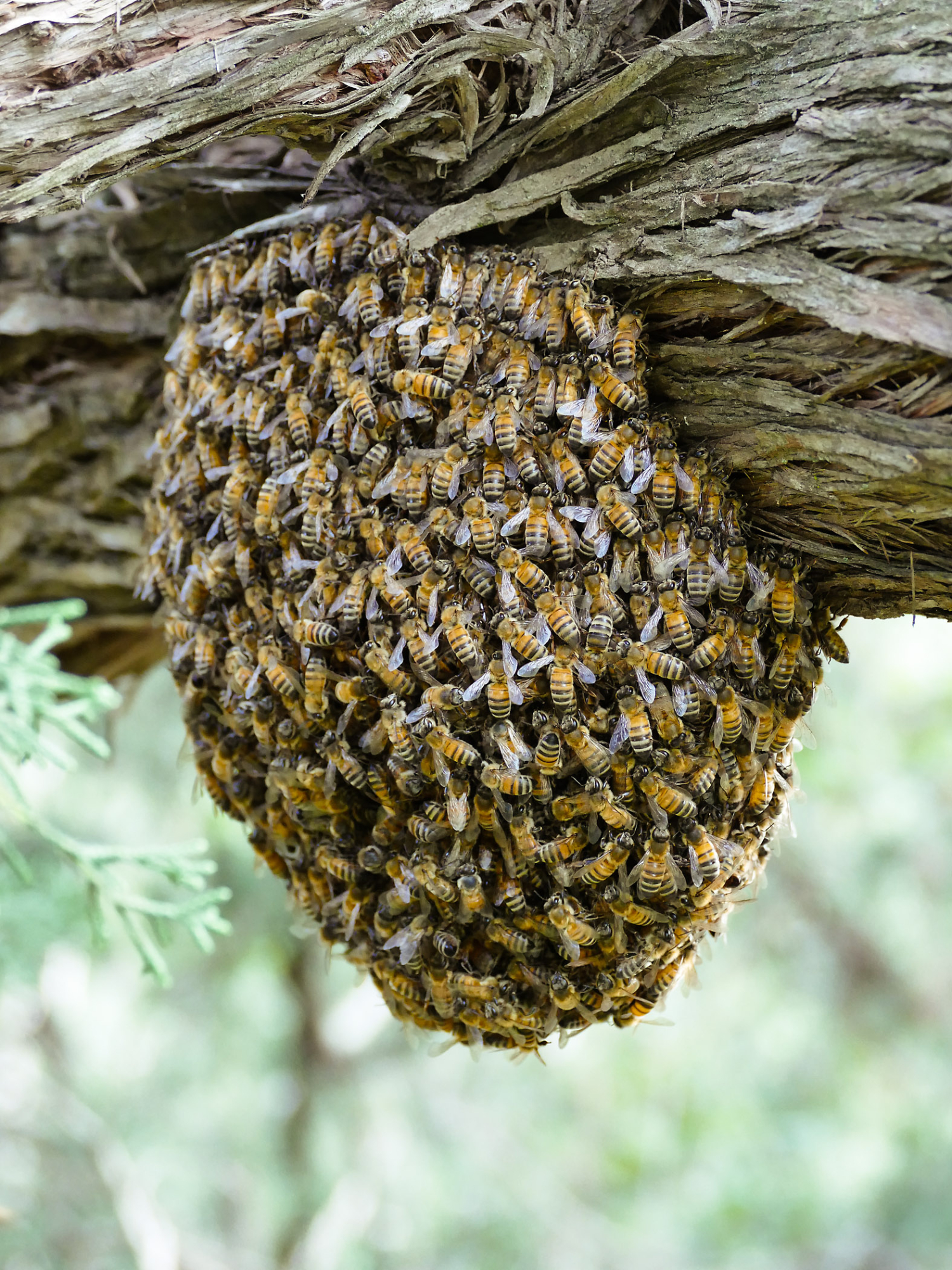 Bee swarm at bottom of meadow