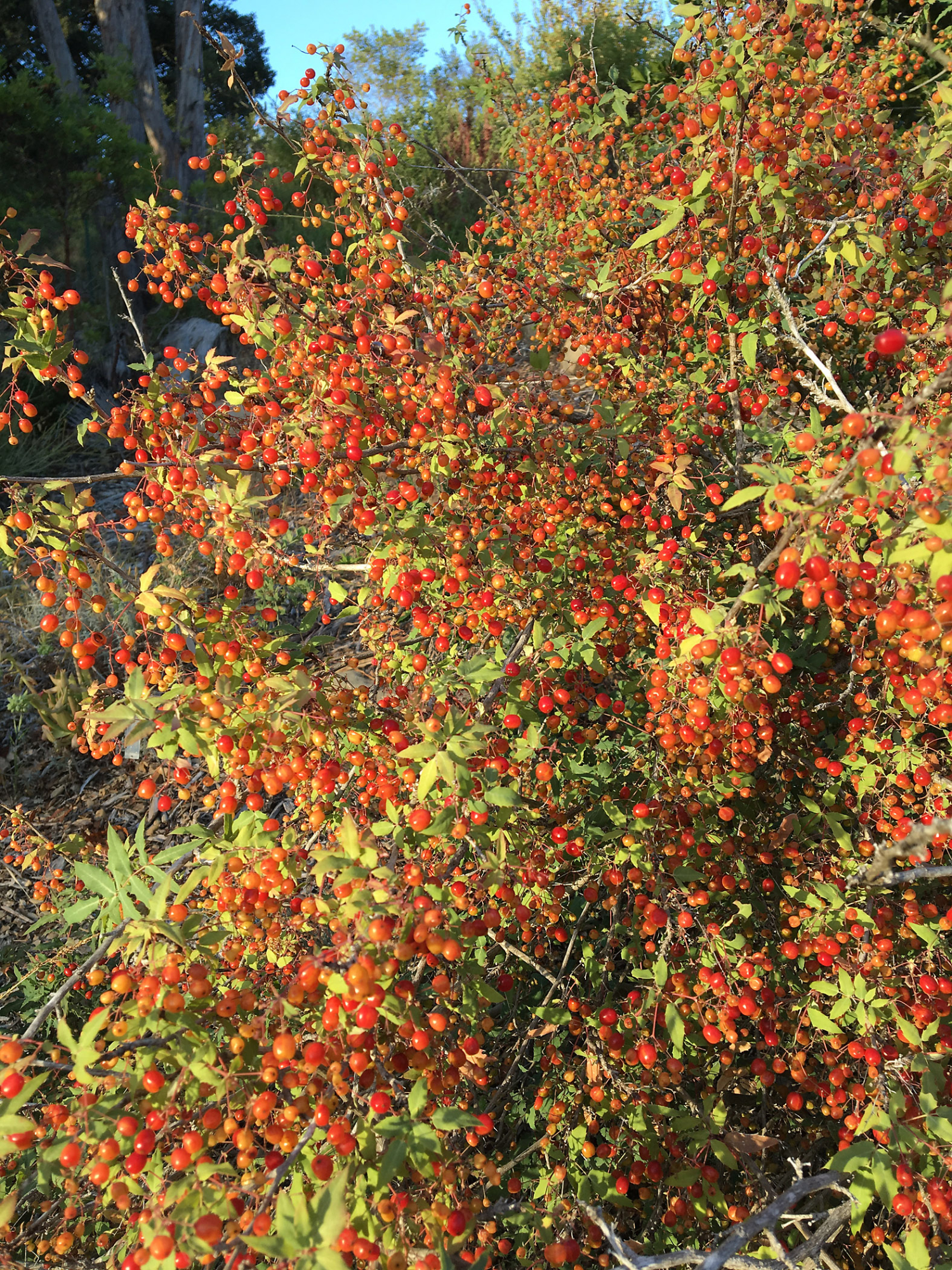« back to search Berberis nevinii in fruit Date May 19, 2016 Media FormatBorn Digital PhotographerElizabeth (Betsy) Collins Location Information Place Name Santa Barbara Botanic Garden Country: United States State: California County: Santa Barbara Plant Information Plant(s) Pictured Nevin's Barberry (Berberis nevinii) More Info Alternative Common NamesBarberry, Nevin's|Mahonia, Nevin ' S Barberry Native StatusNative Plant Type/Growth FormShrub CNPS Rare Plant Index1B.1 Blooming PeriodSpring Synonyms LongMahonia nevinii Plant Communities Chaparral, Berberis nevinii, Chaparral, Coastal Sage Scrub Flower Color Yellow, Green Primary Plant Part Fruit, Leaves Image & Format Details Decade2010s Photo OrientationPortrait Image & Format Tags Color photograph Collection SBBG Born Digital Image Collection Index NumberBD_31202