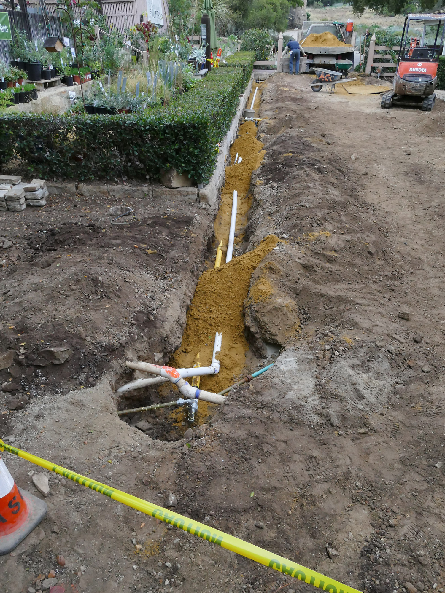 Courtyard renovation, rerouting piping, west edge looking north