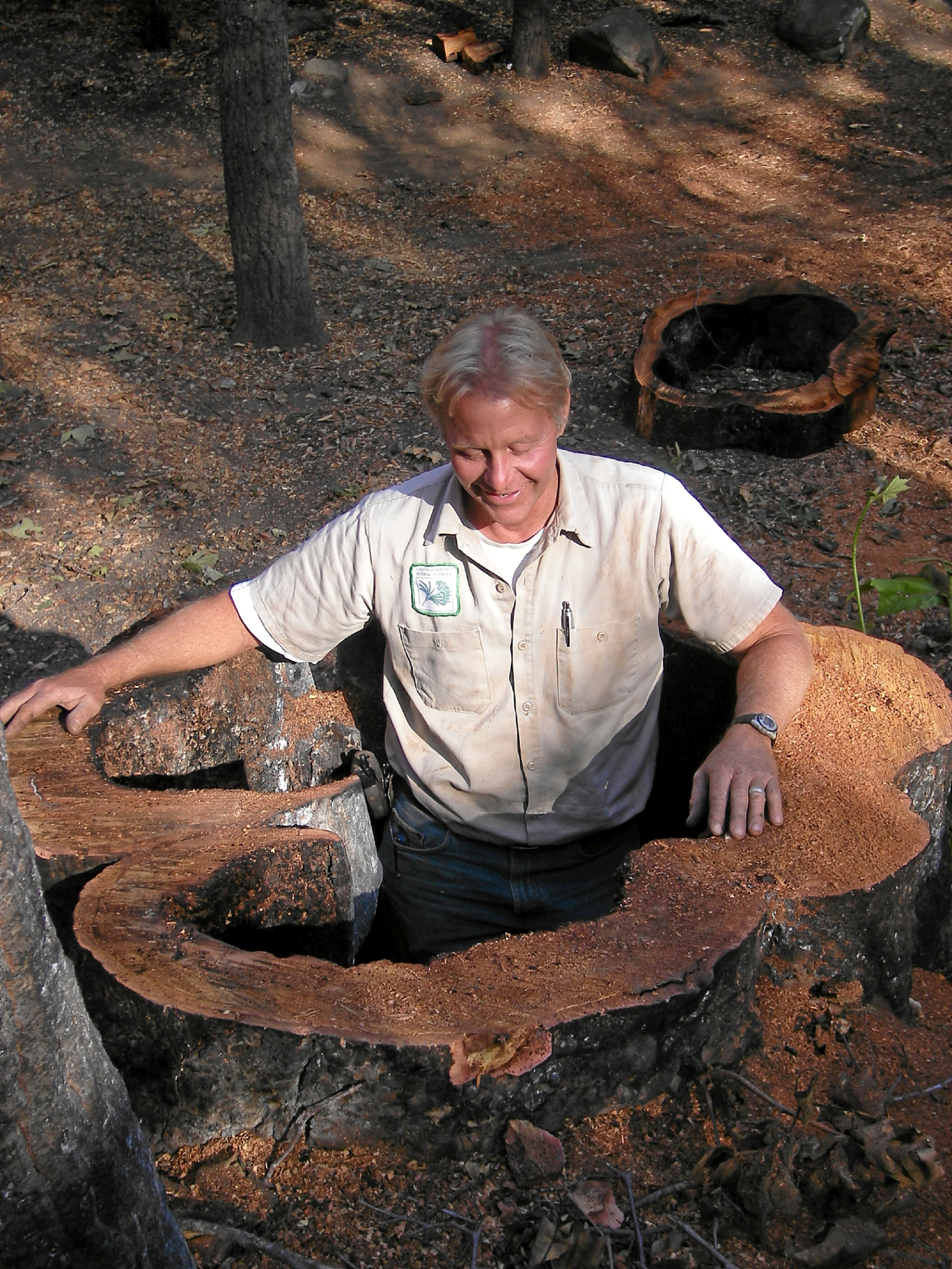Dave Kershaw in cut sycamore stump