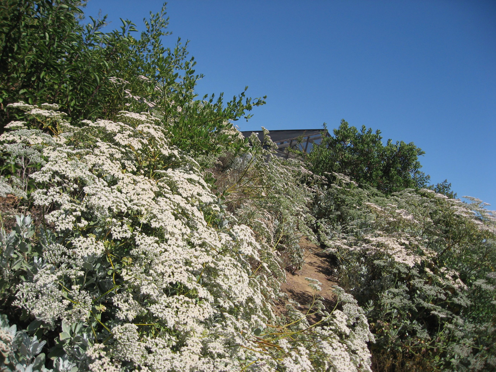 « back to search Eriogonum giganteum, Porter Trail, path to the Hort Unit Date July 2, 2012 Media FormatBorn Digital PhotographerSangeet Khalsa Location Information Place Name Santa Barbara Botanic Garden Country: United States State: California County: Santa Barbara Plant Information Plant(s) Pictured St. Catherine's Lace (Eriogonum giganteum) More Info Alternative Common NamesSaint Catherine's Lace Native StatusNative Plant Type/Growth FormShrub Channel Island EndemicYes Blooming PeriodSpring, Summer, Fall Plant Communities Chaparral, Eriogonum giganteum, Chaparral, Eriogonum giganteum Flower Color Cream, Pink, White Primary Plant Part Inflorescense, Whole Plant Image & Format Details Decade2010s Photo OrientationLandscape Image & Format Tags Color photograph Collection SBBG Born Digital Image Collection Index NumberBD_12412