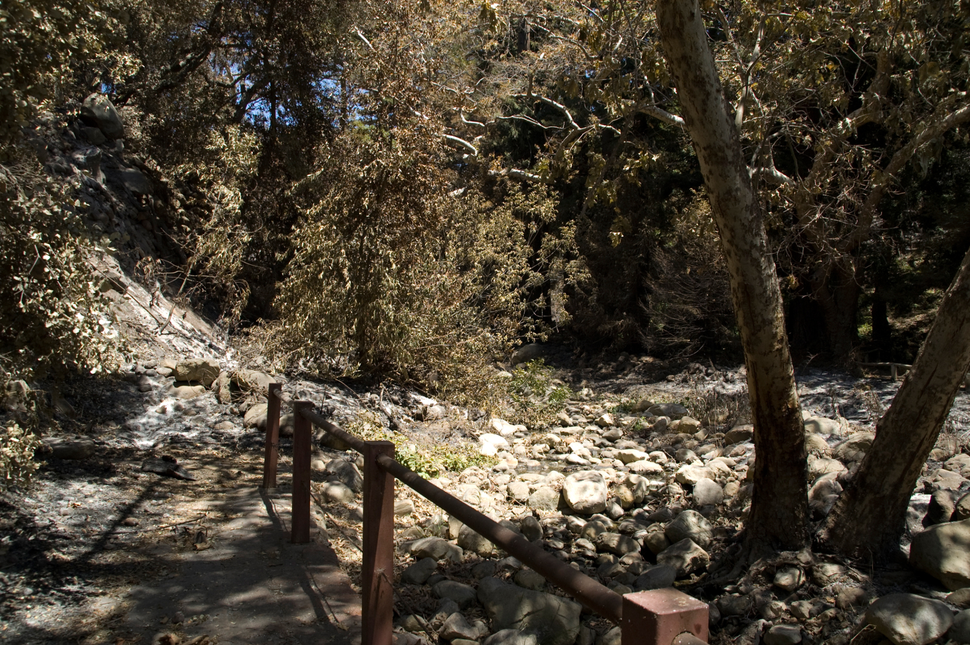 extension of Old Mission dam at upper pool of Mission Creek after the Jesusita Fire