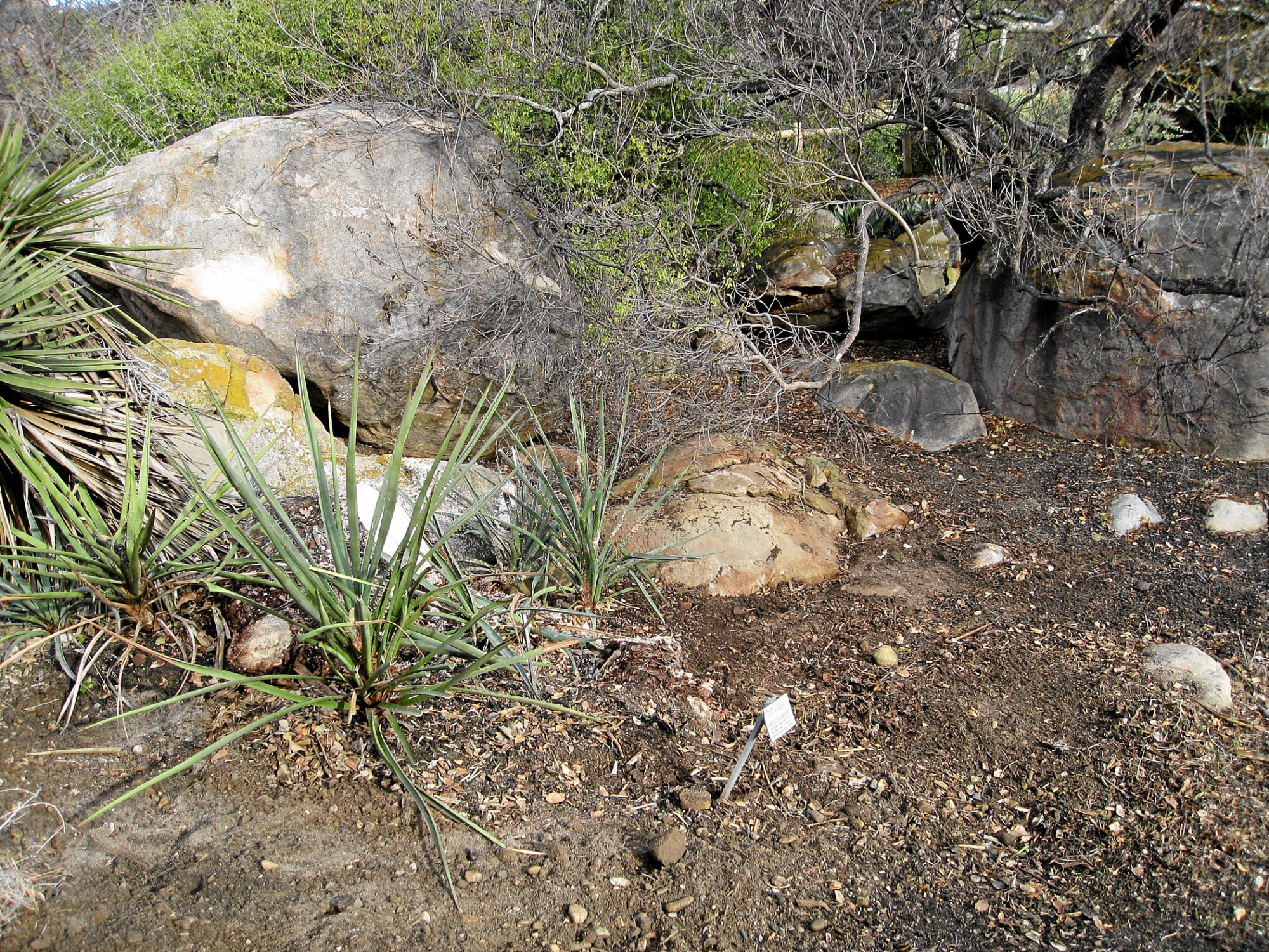 « back to search Fallen Mojave yucca (Yucca schidigera) after clean-up Date January 23, 2012 Media FormatBorn Digital PhotographerElizabeth (Betsy) Collins Location Information Place Name Santa Barbara Botanic Garden Country: United States State: California County: Santa Barbara Plant Information Plant(s) Pictured Mojave Yucca (Yucca schidigera) More Info Alternative Common NamesYucca, Mojave, Izote De Ensenada, Spanish Dagger Native StatusNative Plant Type/Growth FormShrub, Succulent Blooming PeriodSpring Plant Communities Chaparral, Desert, Chaparral, Creosote Bush Scrub Flower Color Cream, White Primary Plant Part Whole Plant Image & Format Details Decade2010s Photo OrientationLandscape Image & Format Tags Color photograph Collection SBBG Born Digital Image Collection Index NumberBD_11319