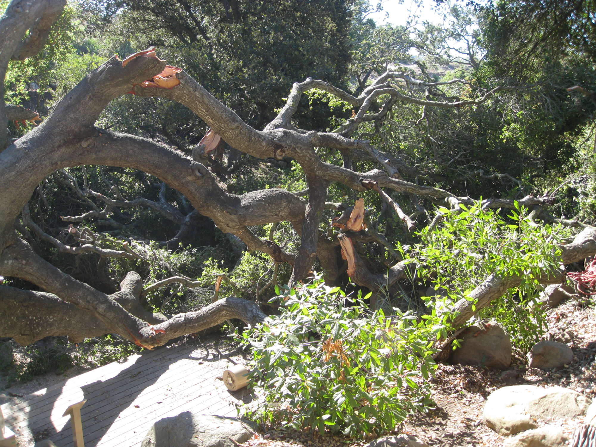 « back to search Fallen oak tree in the Discovery Garden Date August 25, 2010 Media FormatBorn Digital PhotographerElizabeth (Betsy) Collins Location Information Place Name Santa Barbara Botanic Garden Country: United States State: California County: Santa Barbara Plant Information Plant(s) Pictured Coast Live Oak (Quercus agrifolia) Šmuwič (Barbareño)kuẃ More Info Alternative Common NamesOak, Coast Live, California Live Oak Native StatusNative Plant Type/Growth FormTree Blooming PeriodSpring, Winter Plant Communities Woodland, Foothill Woodland, Southern Oak Woodland Flower Color Yellow, Green, Cream Primary Plant Part Stems/Branches/Trunk Image & Format Details Decade2010s Photo OrientationLandscape Image & Format Tags Color photograph Collection SBBG Born Digital Image Collection Index NumberBD_06138