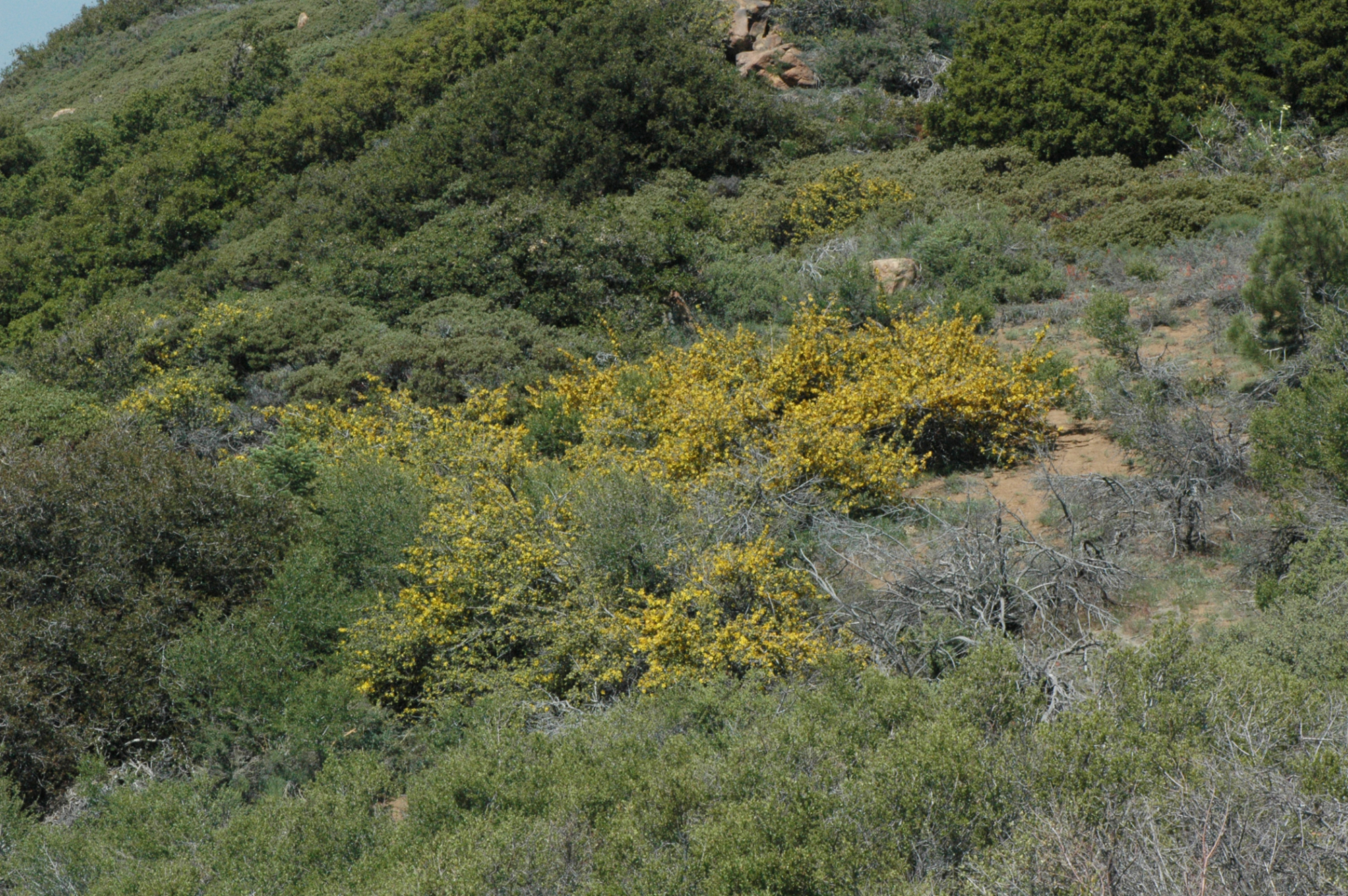 « back to search Fremontodendron californicum Date June 26, 2008 Media FormatBorn Digital PhotographerRobert Muller Location Information Place Name Reyes Peak Country: United States State: California County: Ventura Specific LocationPine Mountain Ridge Road, ca. 5.6 miles east of Hwy 33 Plant Information Plant(s) Pictured California Flannelbush, California fremontia, Napa fremontia (Fremontodendron californicum) More Info Alternative Common NamesFremontia, California, California Flannelbush, Flannelbush Native StatusNative Plant Type/Growth FormShrub Blooming PeriodSummer, Spring Synonyms LongFremontodendron californicum ssp. californicum;Fremontodendron californicum ssp. napensis;Fremontodendron californicum ssp. californicum;Fremontodendron californicum ssp. napensis, Fremontodendron californicum ssp. californicum Plant Communities Chaparral, Woodland, Chaparral, Oak Woodland Flower Color Yellow, Orange Primary Plant Part Whole Plant General Subject Subject Tags Wildflower Display Image & Format Details Decade2000s Image & Format Tags Color photograph Collection Wildflower Book Index NumberBD_00360