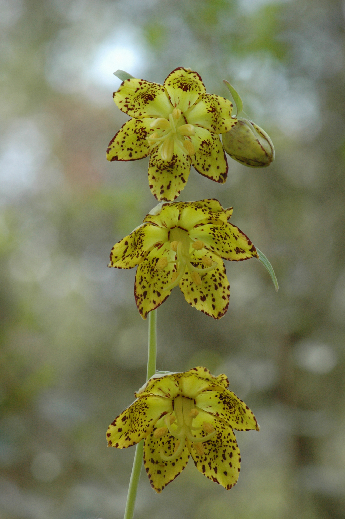 « back to search Fritillaria ojaiensis Date April 8, 2008 Media FormatBorn Digital PhotographerRobert Muller Location Information Place Name Colson Canyon Country: United States State: California County: Santa Barbara Specific LocationColson Canyon Rd., ca. 2.3 miles from Tepusquet Rd. Plant Information Plant(s) Pictured Ojai Fritillary (Fritillaria ojaiensis) More Info Alternative Common NamesFritillary, Ojai, Ojai Missionbells Native StatusNative Plant Type/Growth Formperennial herb CNPS Rare Plant Index1B.2 Blooming PeriodFeb-May Plant Communities Chaparral, Forest, Chaparral, Mixed Evergreen Forest, Yellow Pine Forest Flower Color Yellow, Green, Purple Primary Plant Part Flower Close-up, Inflorescense Image & Format Details Decade2000s Photo OrientationPortrait Image & Format Tags Color photograph Collection Wildflower Book Index NumberBD_00373