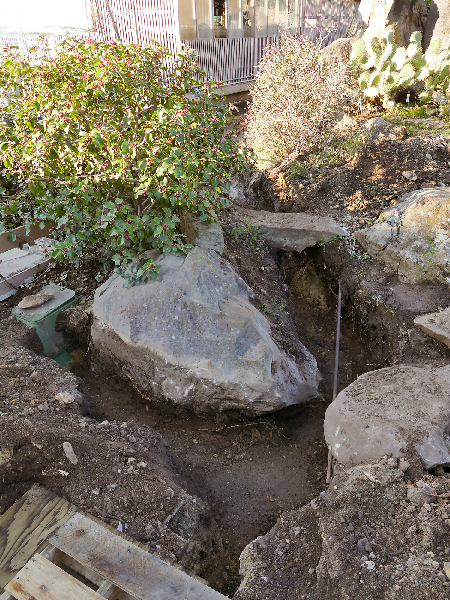 Gas line rerouting in Courtyard and Garden Growers Nursery, view from just outside northwest corner of Courtyard looking west