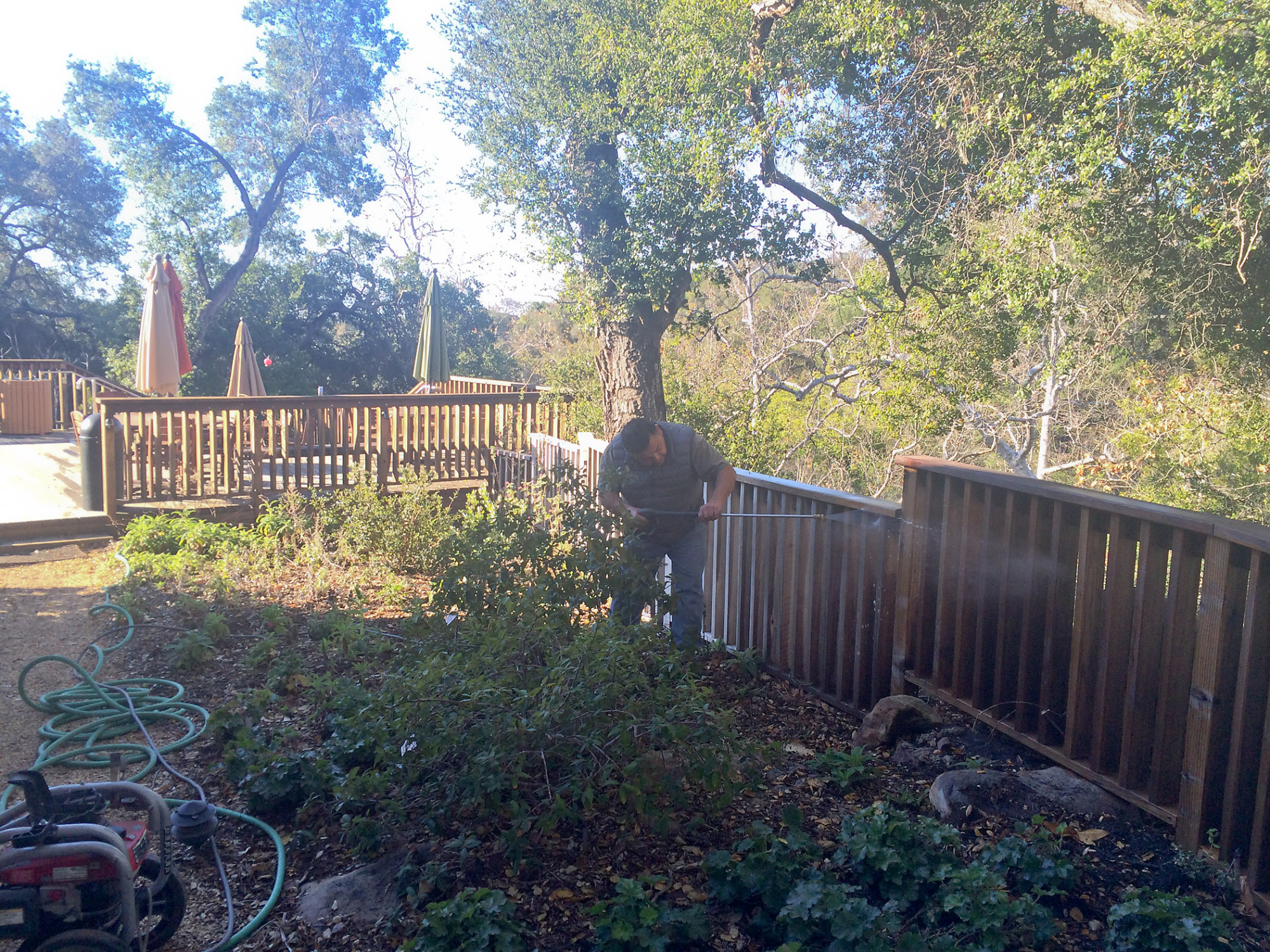 Jim Lechuga pressure washing fence at Water Wise Home Garden