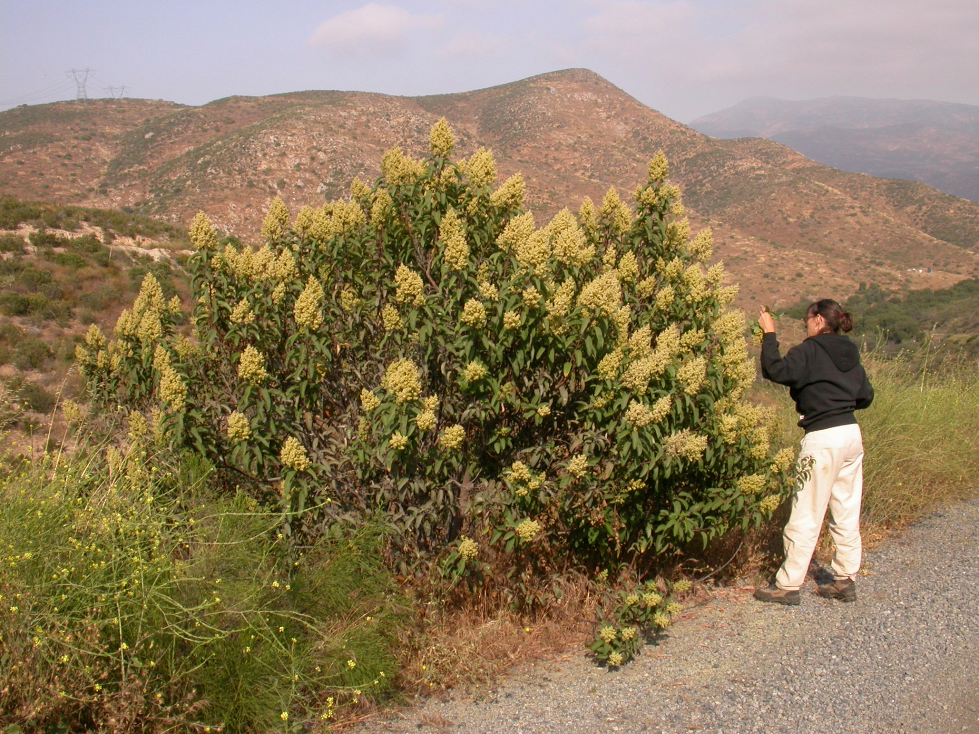 « back to search Malosma laurina. Otay Mountain, San Diego Couny Date June 19, 2003 Media FormatBorn Digital PhotographerElizabeth (Betsy) Collins Location Information Place Name Otay Mountain Country: United States State: California County: San Diego Plant Information Plant(s) Pictured Laurel Sumac (Malosma laurina) Šmuwič (Barbareño)walqaqsh More Info Alternative Common NamesSumac, Laurel, Lentisco (Spanish) Native StatusNative Plant Type/Growth FormShrub Blooming PeriodWinter, Spring Synonyms LongRhus laurina Plant Communities Chaparral, Malosma laurina, Chaparral, Coastal Sage Scrub Flower Color Cream, White Primary Plant Part Whole Plant Image & Format Details Decade2000s Photo OrientationLandscape Image & Format Tags Color photograph Collection SBBG Born Digital Image Collection Index NumberBD_03034