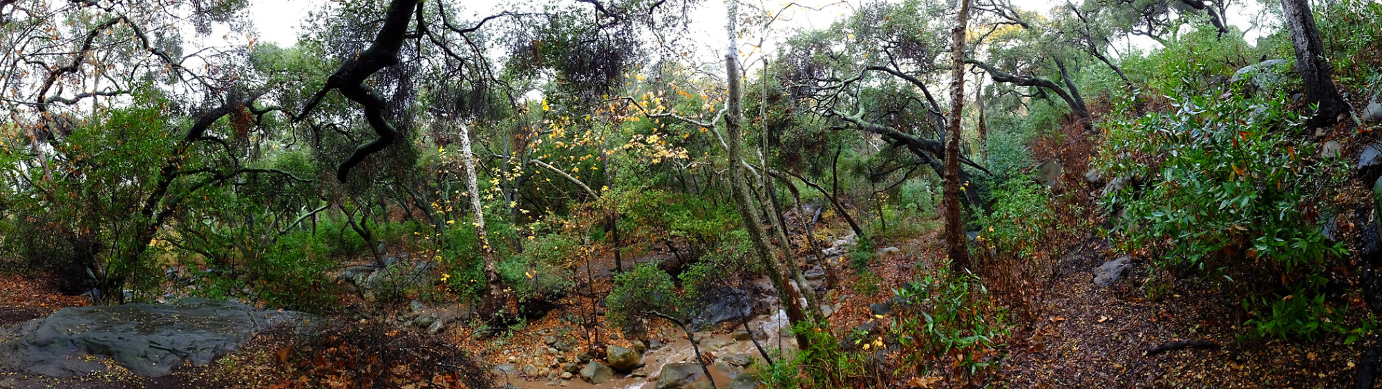 Panorama of Canyon and Mission Creek just above lower crossing, after rainfall