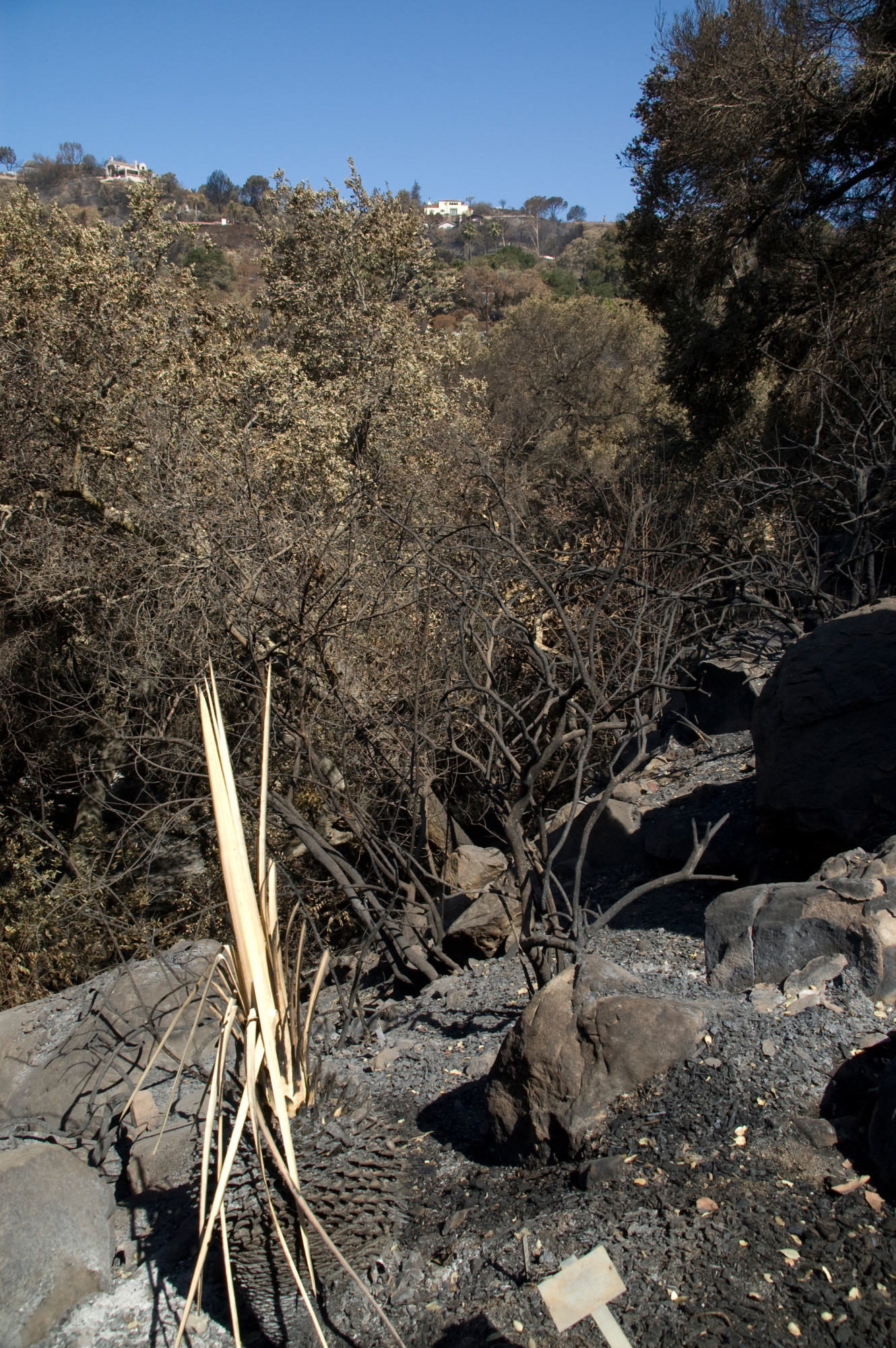 Santa Barbara Botanic Garden after the Jesusita Fire, burned vegetation
