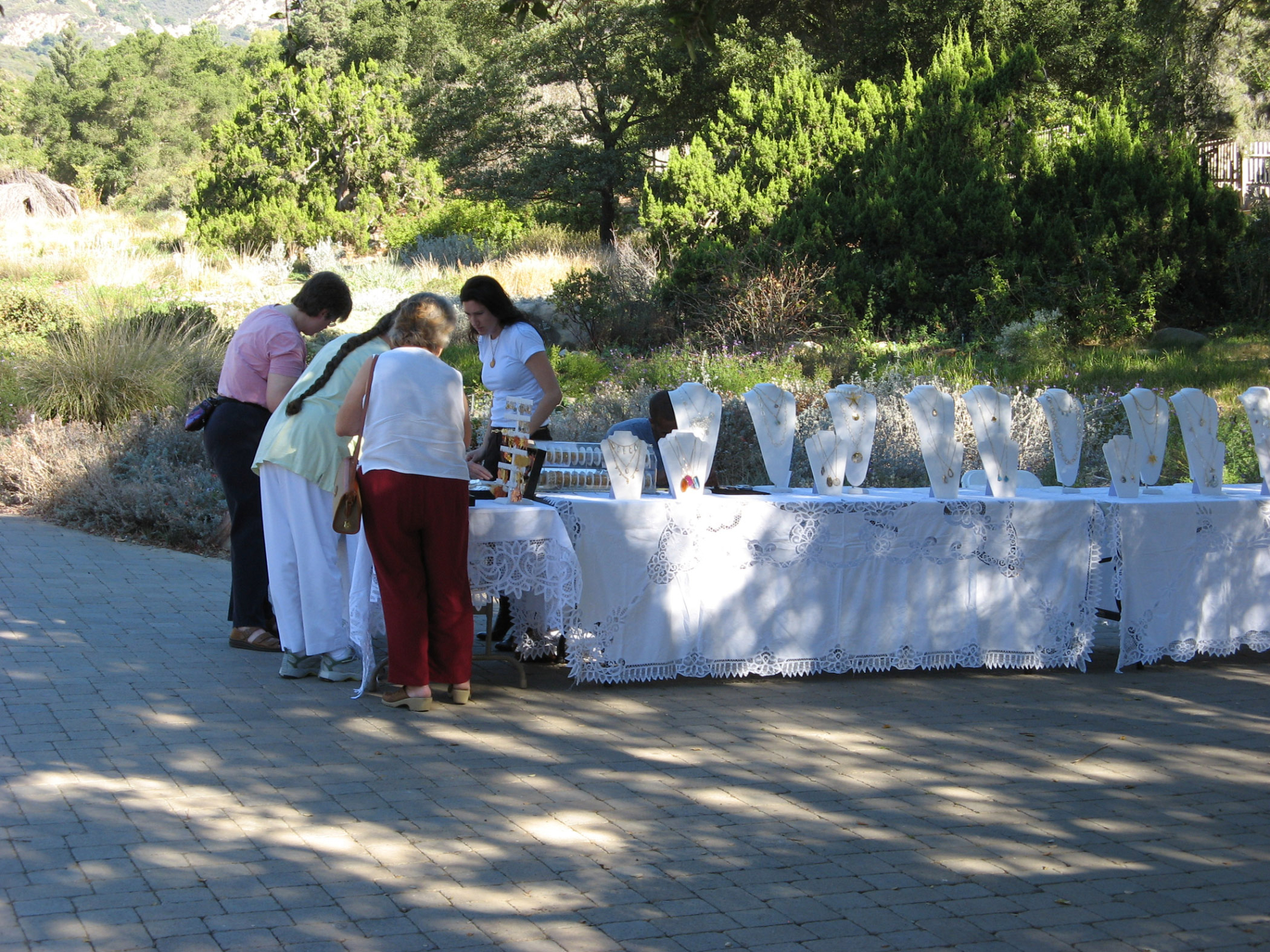 « back to search SBBG Holiday Marketplace, 2006 Date November 18, 2006 Media FormatBorn Digital PhotographerGail Milliken Location Information Place Name Santa Barbara Botanic Garden Country: United States State: California County: Santa Barbara Santa Barbara Botanic Garden Garden Section/Display Courtyard General Subject Event Name Holiday Market Place Event Type Public Image & Format Details Decade2000s Photo OrientationLandscape Image & Format Tags Color photograph Collection SBBG Born Digital Image Collection Index NumberBD_13301