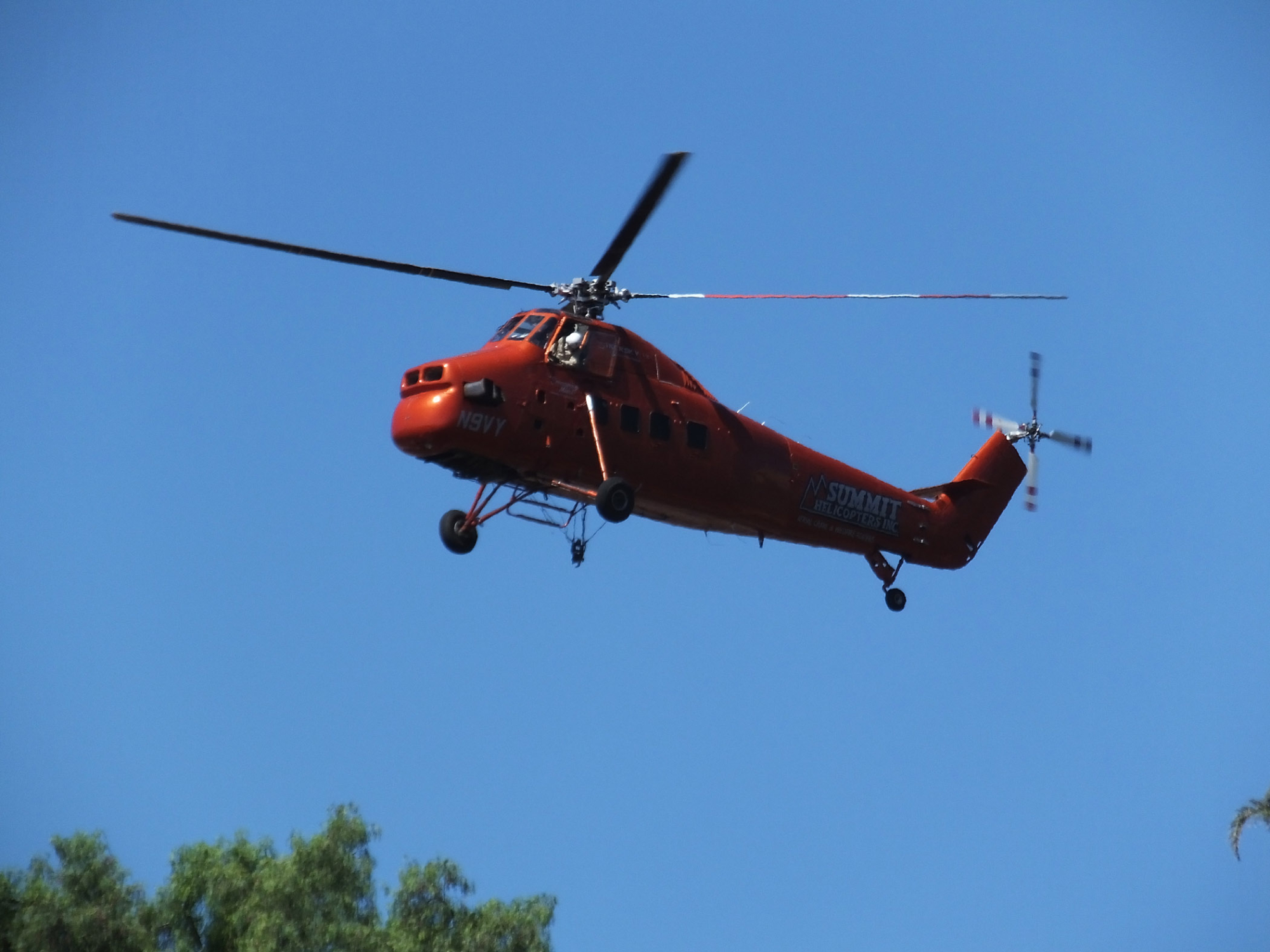Sikorsky S-58T Screaming Mimi helicopter replacing utility pole in west Mission Canyon