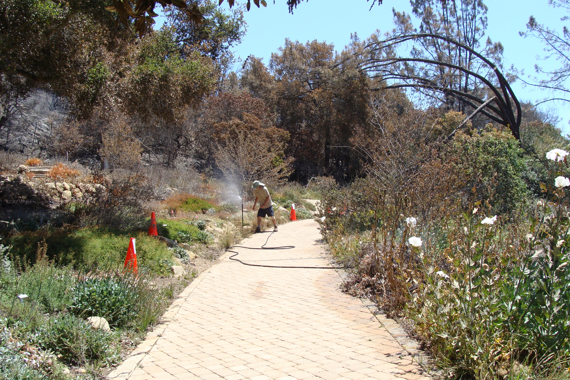 turning on an overhead sprinkler in the Meadow View display, after the Jesusita Fire