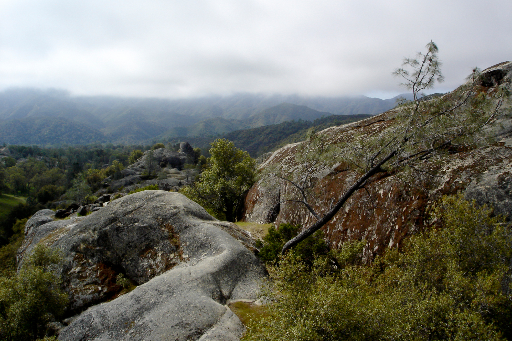 view from top of Wagon Caves rock shelter, Fort Hunter Liggett, SBBG Research and Conservation staff field trip, 2006