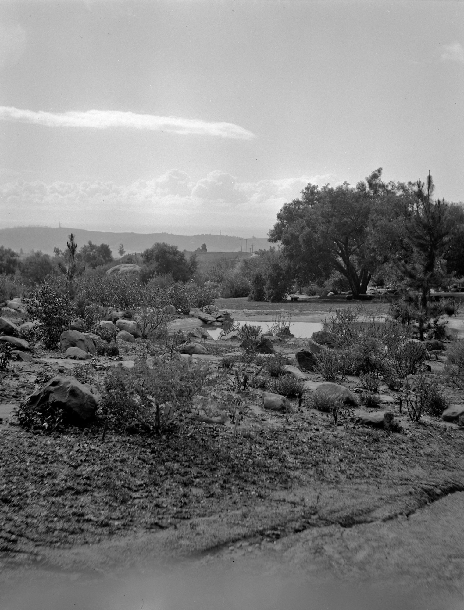 « back to search Early view of historic lake in upper Meadow Date After 1931 Media FormatNegative PhotographerUnknown Description The Meadow Lake was created in 1931. Location Information Place Name Santa Barbara Botanic Garden Country: United States State: California County: Santa Barbara Specific LocationSanta Barbara Botanic Garden Santa Barbara Botanic Garden Garden Section/Display Lake (historic) Image & Format Details Decade1930s Photo OrientationPortrait Image & Format Tags Black & white photograph Collection SBBG Library Archives Index NumberNG_00088