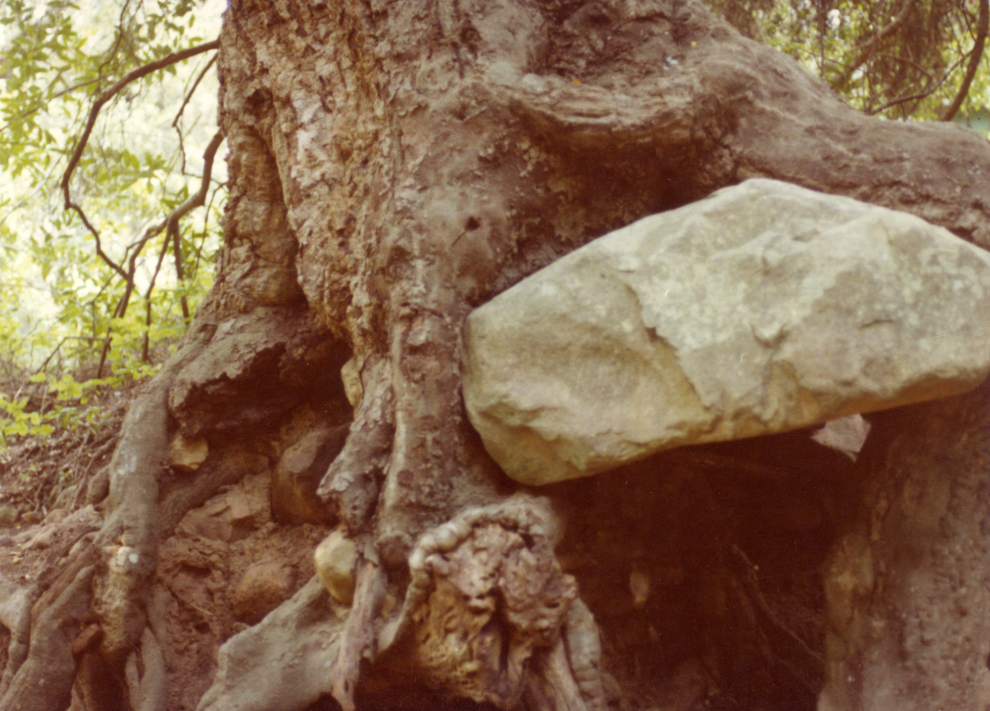 boulder entangled in tree roots