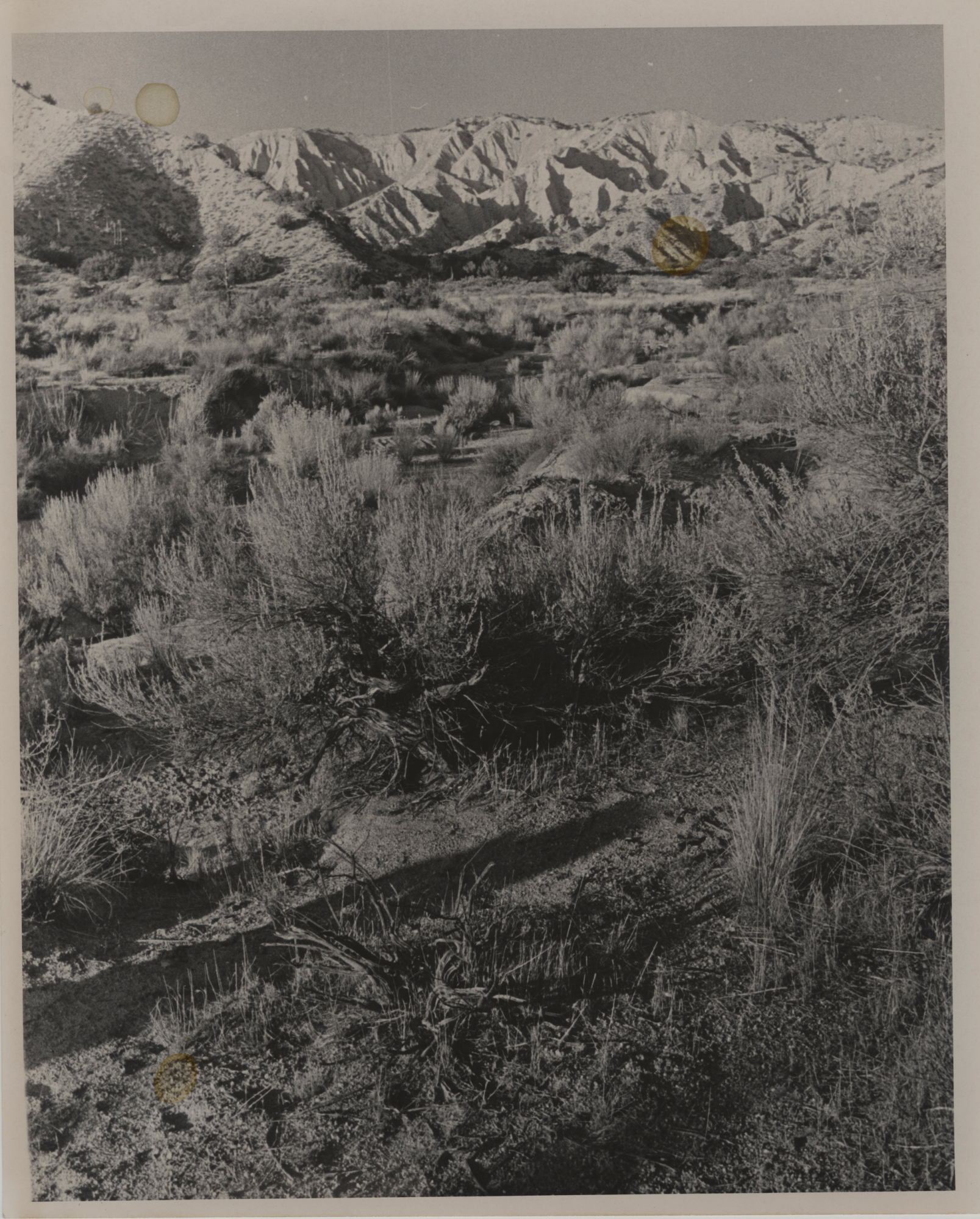 « back to search Quatal Canyon, Cuyama Date Date Unknown Media FormatPrint PhotographerDick Smith Location Information Place Name Quatal Canyon, Cuyama Country: United States State: California County: Ventura Natural Landscapes Terrain Canyons/Arroyos, Mountains, Valley/Basin Image & Format Details Photo OrientationLandscape Image & Format Tags Black & white photograph Collection Clif Smith Collection Original Size 8x10 Index NumberPR_02038 Print Type Black & White
