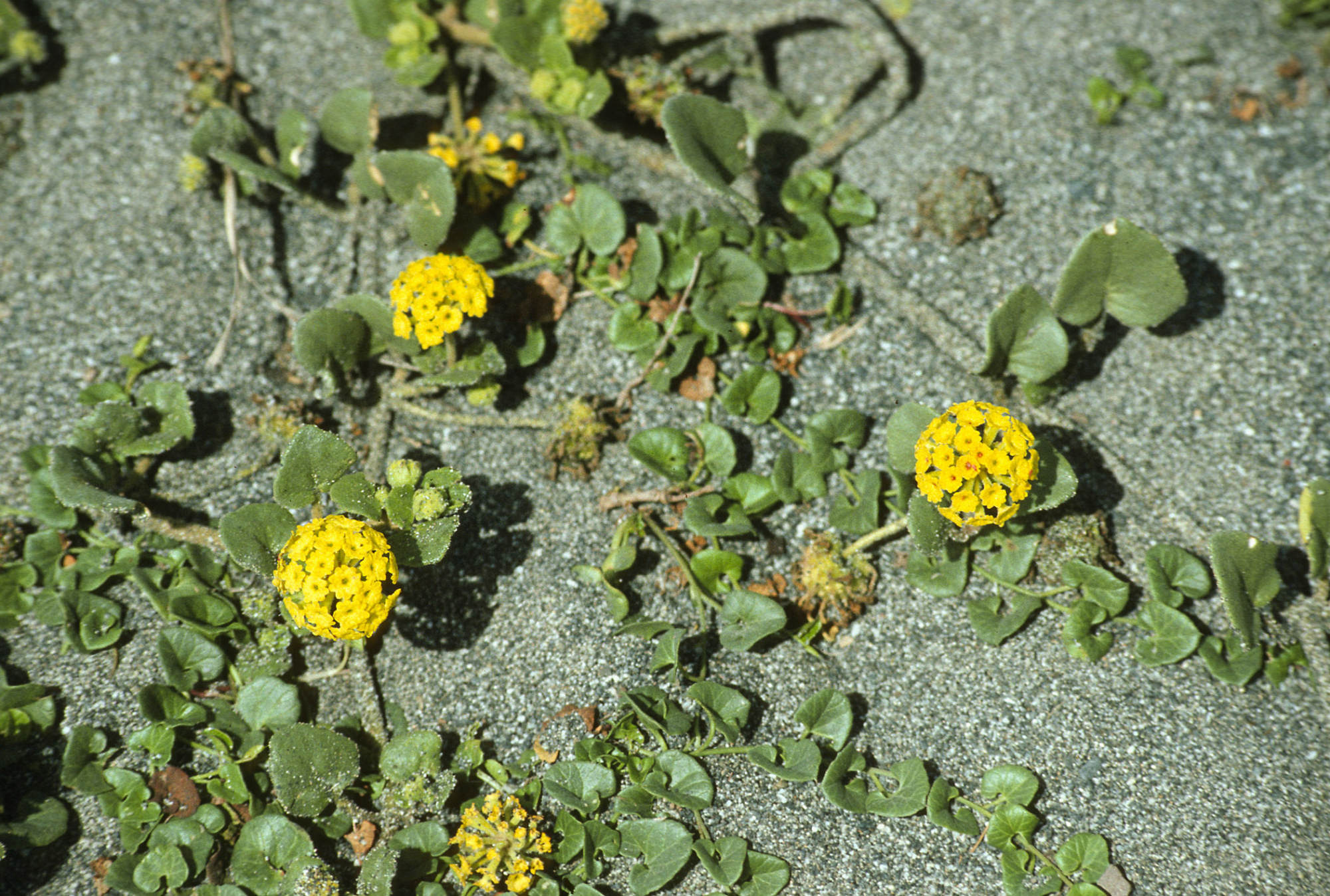 « back to search Abronia latifolia Date May 1992 Media FormatSlide PhotographerDieter H. Wilken Location Information Place Name Redwood National Park Country: United States Specific LocationBig Lagoon Plant Information Plant(s) Pictured Coastal Sand Verbena (Abronia latifolia) More Info Alternative Common NamesSand Verbena, Sand-verbena, Yellow Sand Verbena, Yellow Sand-verbena Native StatusNative Plant Type/Growth Formperennial herb CultivarsYes Blooming PeriodSummer, Spring, Fall Plant Communities Abronia latifolia, Coastal Sage Scrub, Coastal Strand Flower Color Yellow Primary Plant Part Whole Plant General Subject Subject Tags Wildflower Display Image & Format Details Decade1990s Photo OrientationLandscape Image & Format Tags Color photograph Collection Dieter Wilken Date is Processing Date Yes Index NumberSL_20820