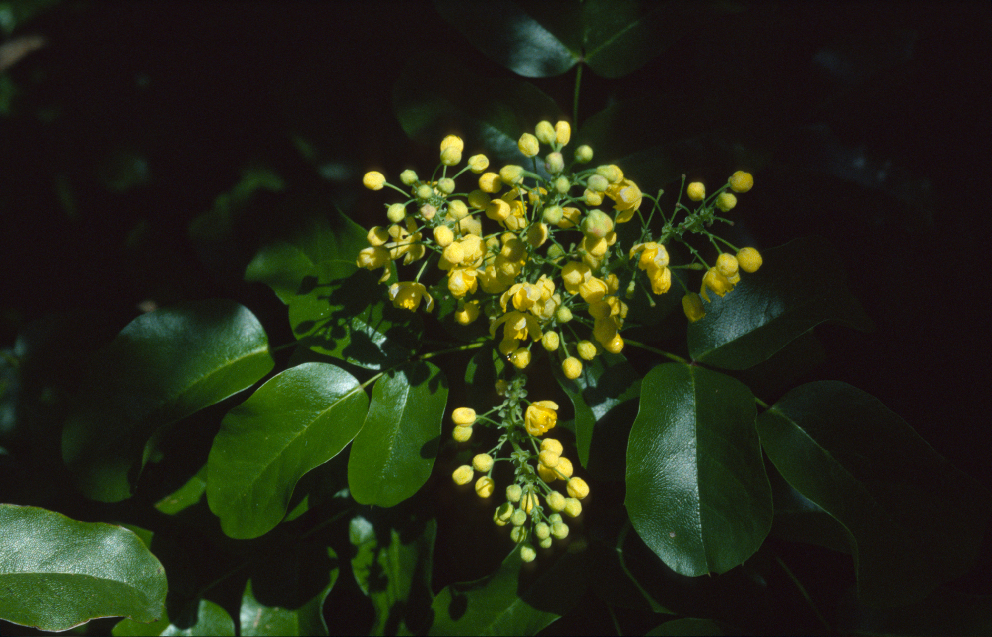 « back to search Berberis pinnata ssp. insularis Date April 8, 1998 Media FormatSlide PhotographerDieter H. Wilken Location Information Place Name Santa Barbara Botanic Garden Country: United States State: California County: Santa Barbara City: Santa Barbara Plant Information Plant(s) Pictured island barberry (Berberis pinnata ssp. insularis) More Info Alternative Common NamesBarberry, Island, Native StatusNative Plant Type/Growth FormShrub CNPS Rare Plant Index1B.2 CultivarsYes Blooming PeriodFeb-May Plant Communities Forest, Woodland, Coniferous Forest, Oak Woodland Flower Color Yellow Primary Plant Part Leaves, Inflorescense, Flower Close-up General Subject General Subject Plant Pictures Image & Format Details Decade1990s Photo OrientationLandscape Image & Format Tags Color photograph, Low-key photography Collection Dieter Wilken Index NumberSL_01350