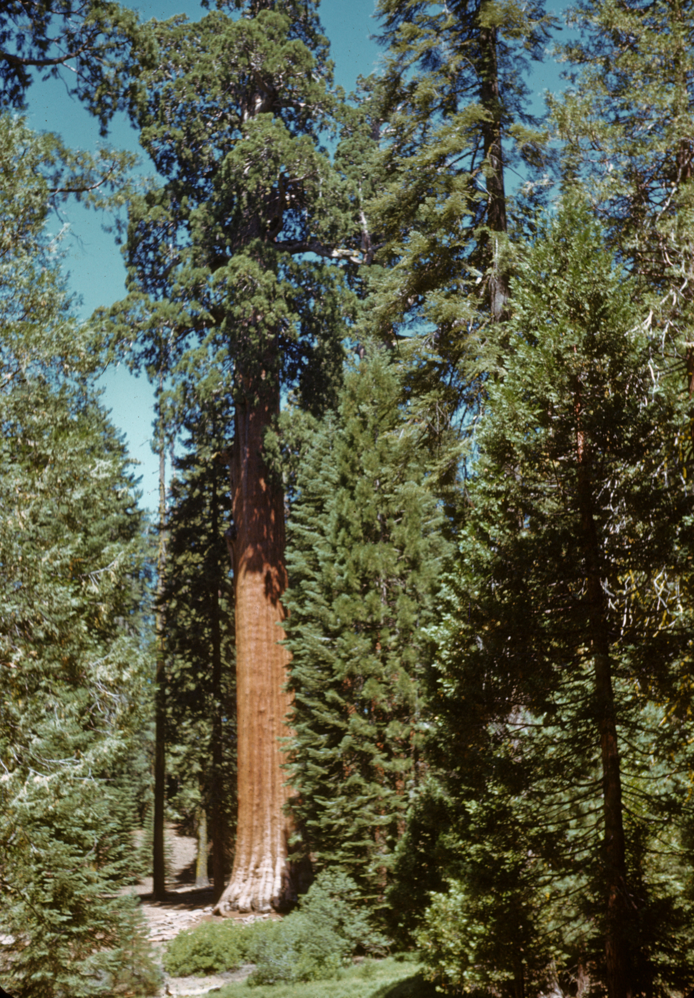 « back to search California Sequoia in Grant Grove Date August 5, 1949 Media FormatSlide PhotographerHugh Dearing Location Information Place Name Sequoia National Park Country: United States State: California County: Tulare Specific LocationGrant Grove Plant Information Plant(s) Pictured Giant Sequoia (Sequoiadendron giganteum) More Info Alternative Common NamesSequoia, Giant, Big Tree, Bigtree, Giant Sequoia Native StatusNative Plant Type/Growth FormTree Blooming PeriodSpring Plant Communities Forest, Red Fir Forest, Yellow Pine Forest Flower Color Green, Cream Primary Plant Part Whole Plant Image & Format Details Decade1940s Photo OrientationPortrait Image & Format Tags Color photograph Collection SBBG Library Archives Index NumberSL_15276