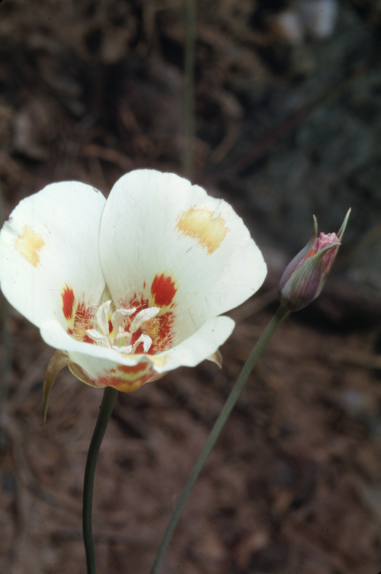 « back to search Calochortus venustus Date June 8, 1962 Media FormatSlide PhotographerDonald Myrick Location Information Country: United States State: California County: Santa Barbara Specific LocationQuatal Canyon, Cuyama Valley Plant Information Plant(s) Pictured Butterfly Mariposa Lily (Calochortus venustus) More Info Alternative Common NamesMariposa Lily, Butterfly, Butterfly Mariposa Lily Native StatusNative Plant Type/Growth Formperennial herb Blooming PeriodSpring Plant Communities Forest, Grassland, Woodland, Foothill Woodland, Valley Grassland, Yellow Pine Forest Flower Color Cream, Lavender, Orange, Pink, Purple, Red, White Primary Plant Part Flower Close-up Image & Format Details Decade1960s Photo OrientationPortrait Image & Format Tags Color photograph Collection Myrick Index NumberSL_00325 Film Type Kodachrome