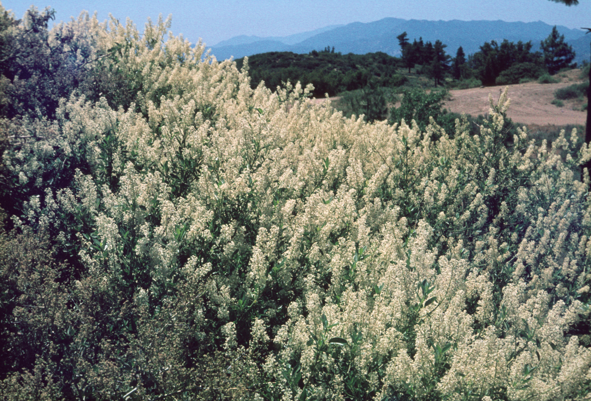 « back to search Ceanothus integerrimus Date June 15, 1970 Media FormatSlide PhotographerLyda Edge Location Information Place Name Reyes Peak Country: United States State: California County: Ventura Plant Information Plant(s) Pictured Deer Brush (Ceanothus integerrimus) More Info Alternative Common NamesDeerbrush Ceanothus Native StatusNative Plant Type/Growth FormShrub Blooming PeriodSpring, Winter Plant Communities Forest, Woodland, Mixed Evergreen Forest, Northern Oak Woodland, Yellow Pine Forest Flower Color Blue, Lavender, White General Subject Subject Tags Wildflower Display Image & Format Details Decade1970s Photo OrientationLandscape Image & Format Tags Color photograph Collection SBBG Library Archives Index NumberSL_20017