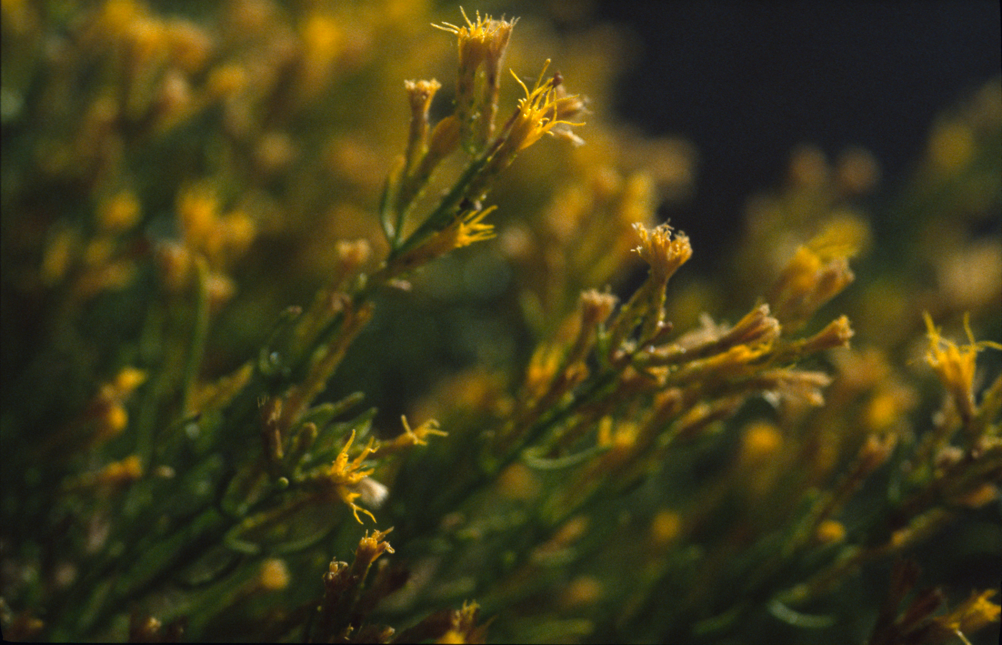 « back to search Ericameria cuneata Date December 13, 1998 Media FormatSlide PhotographerDieter H. Wilken Location Information Country: United States State: California Plant Information Plant(s) Pictured Wedgeleaf Goldenbush (Ericameria cuneata) More Info Alternative Common NamesGoldenbush, Cliff, Cliff Heath-goldenrod, Cliff Heathgoldenrod Native StatusNative Plant Type/Growth FormShrub Blooming PeriodWinter, Summer, Fall Plant Communities Forest, Woodland, Pinyon-Juniper Woodland, Yellow Pine Forest Flower Color Yellow Primary Plant Part Inflorescense, Flower Close-up Image & Format Details Decade1990s Photo OrientationLandscape Image & Format Tags Color photograph Collection Dieter Wilken Index NumberSL_01510