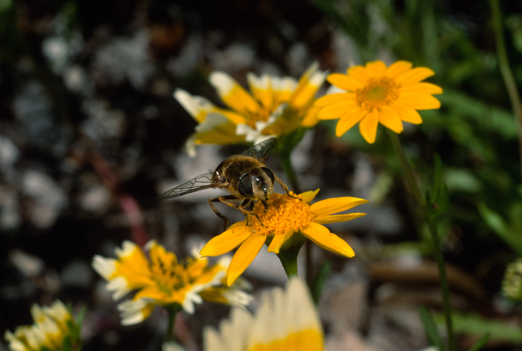 fly, Lasthenia, Santa Barbara Botanic Garden,