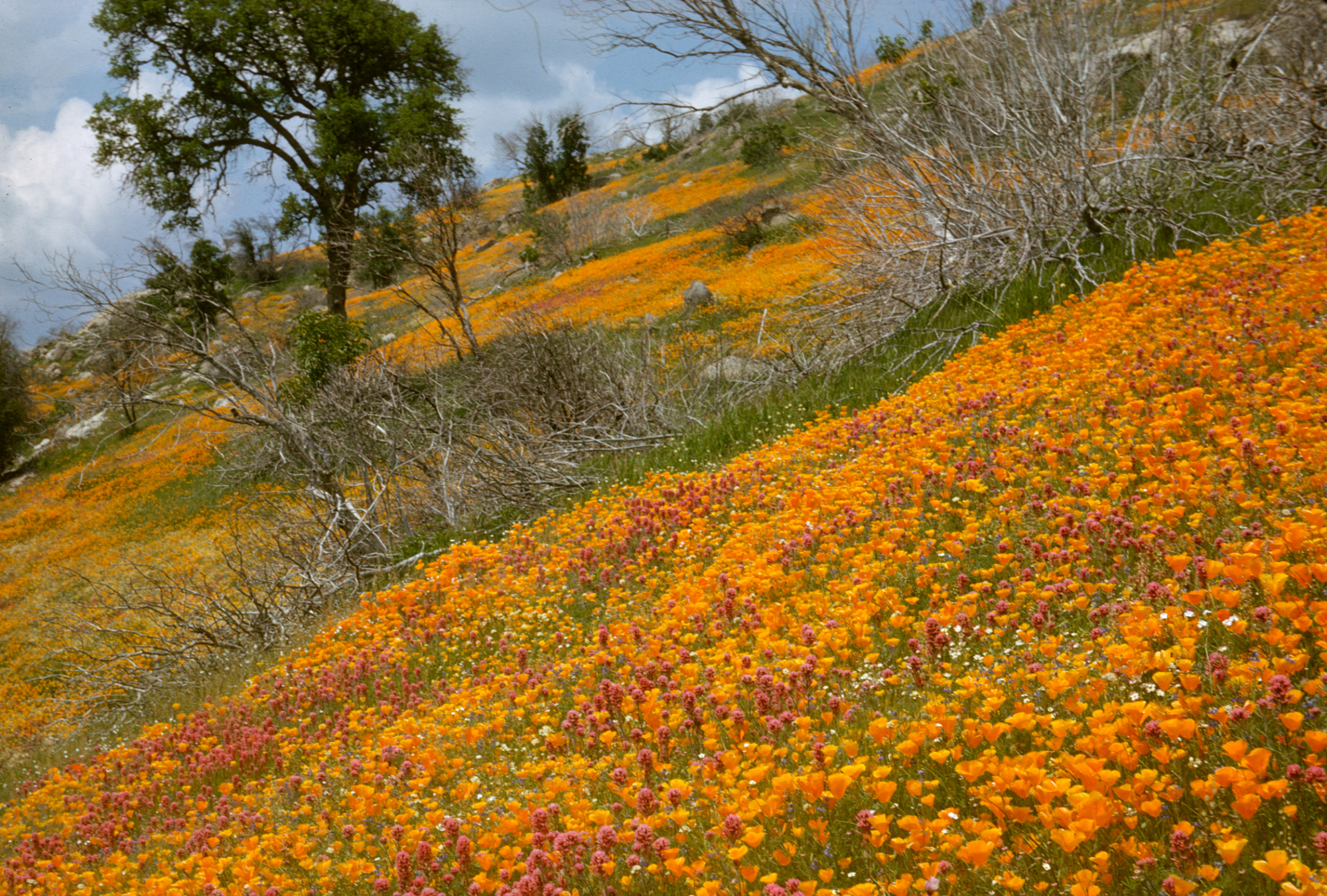 hillside covered in poppies and owl's clover