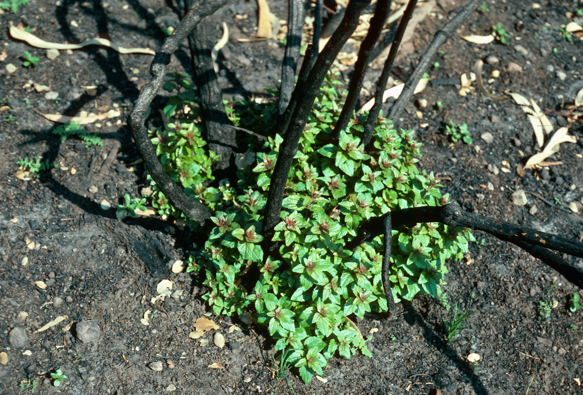 Keckiella cordifolia sprouting after fire, road to Toro Canyon Park, Santa Barbara County