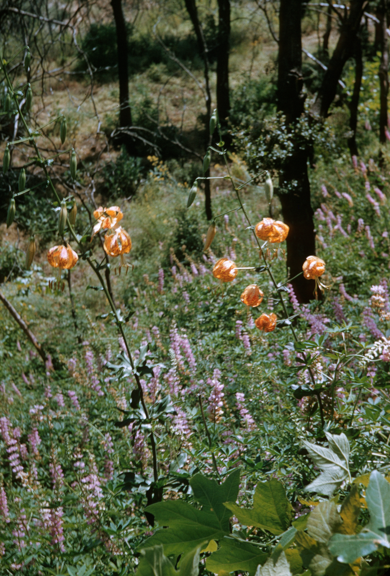 « back to search Lilium humboldtii Media FormatSlide PhotographerFrank E. Ford Location Information Plant Information Plant(s) Pictured Humboldt Lily (Lilium humboldtii) More Info Alternative Common NamesLily, Humboldt's, Humboldt Lily Native StatusNative Plant Type/Growth Formperennial herb Blooming PeriodSummer, Spring Plant Communities Chaparral, Forest, Woodland, Chaparral, Foothill Woodland, Yellow Pine Forest Flower Color Red, Orange, Yellow, Purple, Brown Primary Plant Part Flower Close-up, Whole Plant Image & Format Details Photo OrientationPortrait Collection SBBG Library Archives Index NumberSL_19762