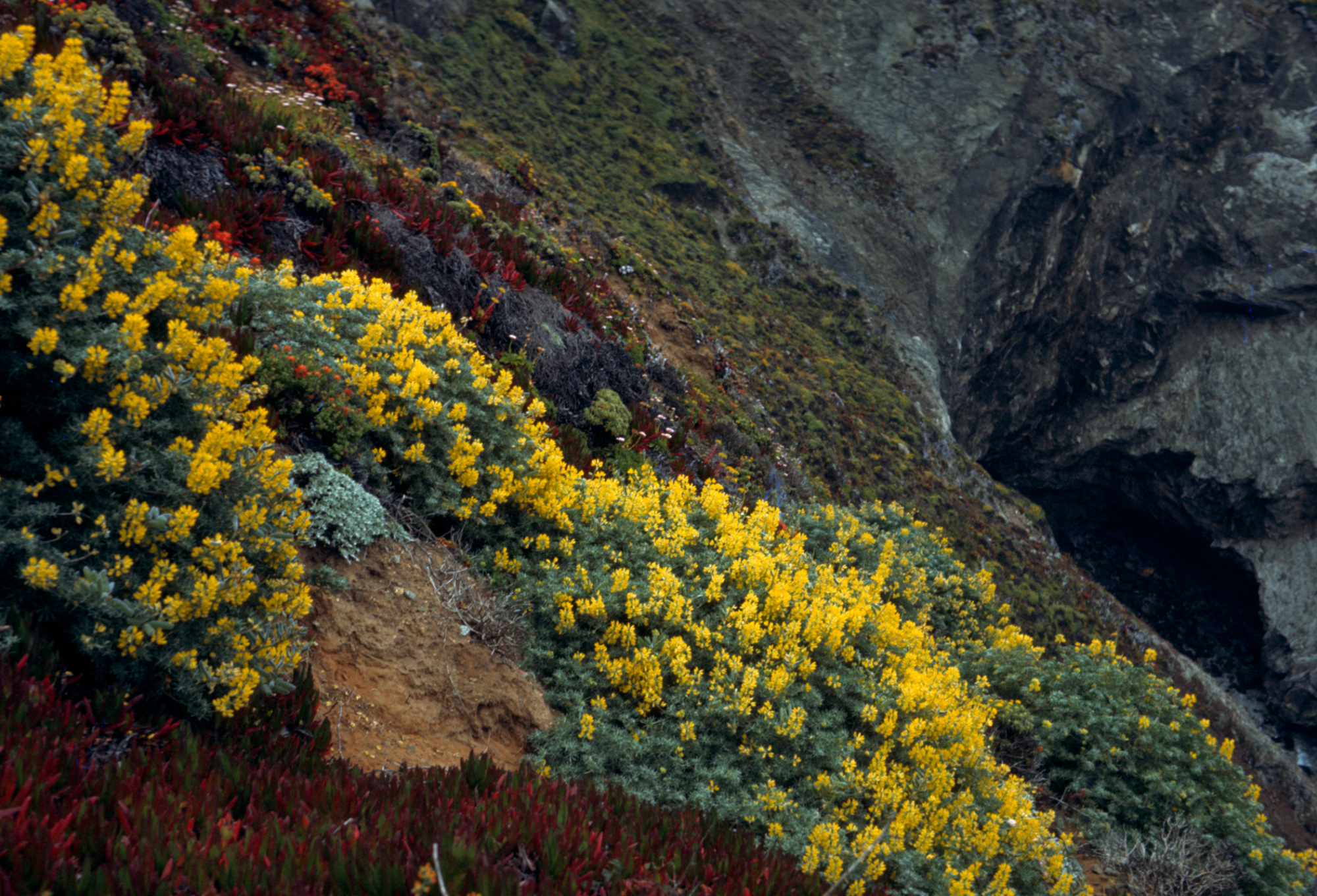 « back to search Lupinus arboreus, Hwy 1 Date July 1965 Media FormatSlide PhotographerFrank E. Ford Location Information Place Name Big Sur Country: United States State: California County: Monterey Plant Information Plant(s) Pictured Coastal Bush Lupine (Lupinus arboreus) More Info Alternative Common NamesLupine, Coastal Bush, Yellow Bush Lupine, Tree Lupine Native StatusNative Plant Type/Growth FormShrub Blooming PeriodSpring Plant Communities Chaparral, Lupinus arboreus, Forest, Chaparral, Closed-Cone Pine Forest, Coastal Sage Scrub, Coastal Strand, Northern Coastal Scrub Flower Color Yellow, Lavender Primary Plant Part Whole Plant Image & Format Details Decade1960s Photo OrientationLandscape Image & Format Tags Color photograph Collection SBBG Library Archives Index NumberSL_19737