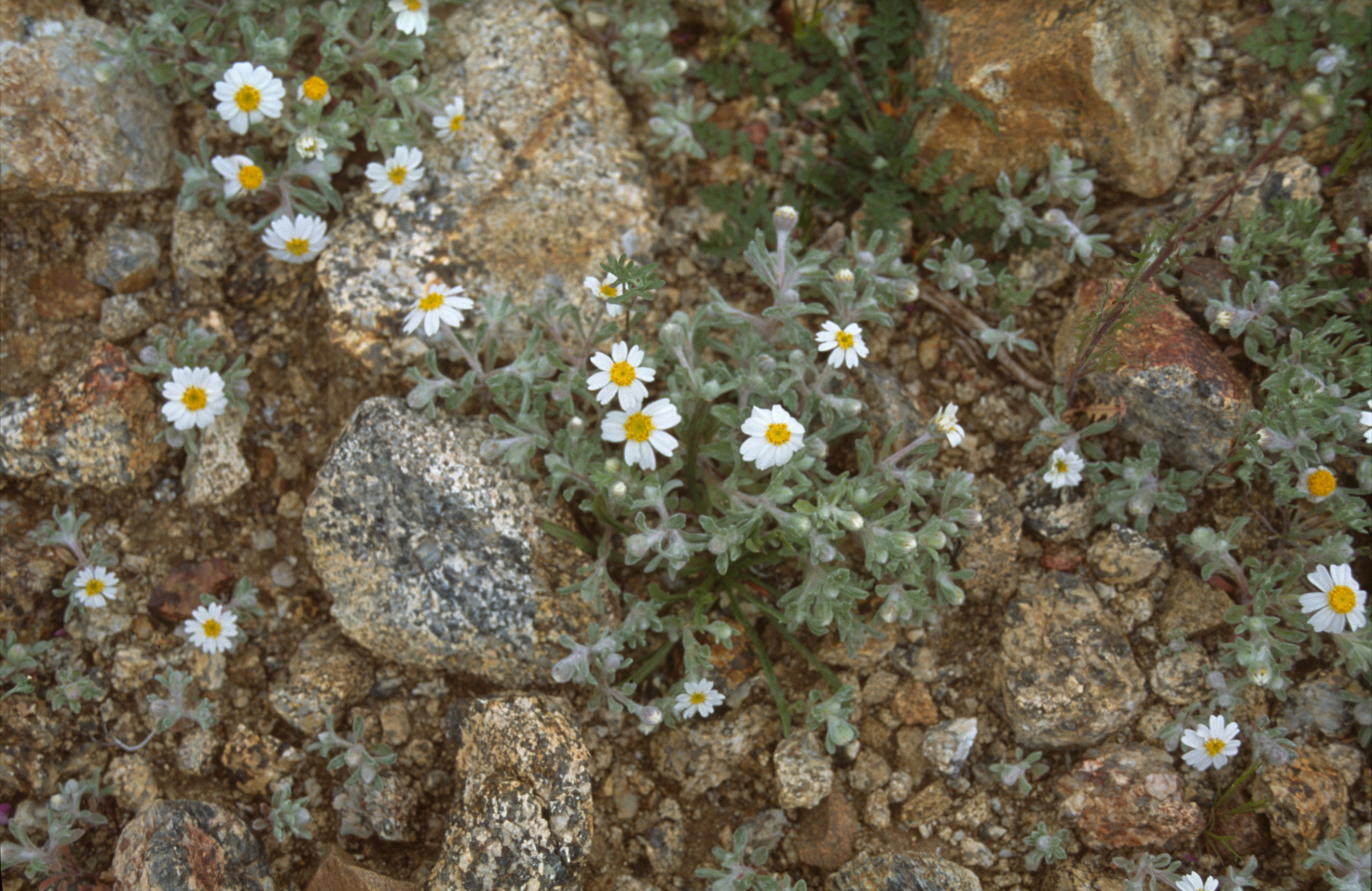 « back to search Monoptilon Date March 10, 2005 Media FormatSlide PhotographerCarol Bornstein Location Information Place Name Anza-Borrego Desert State Park Country: United States State: California County: San Diego Specific LocationAnza-Borrego Desert State Park Plant Information Plant(s) Pictured (Monoptilon) Image & Format Details Decade2000s Photo OrientationLandscape Image & Format Tags Color photograph Collection Carol Bornstein Index NumberSL_01958