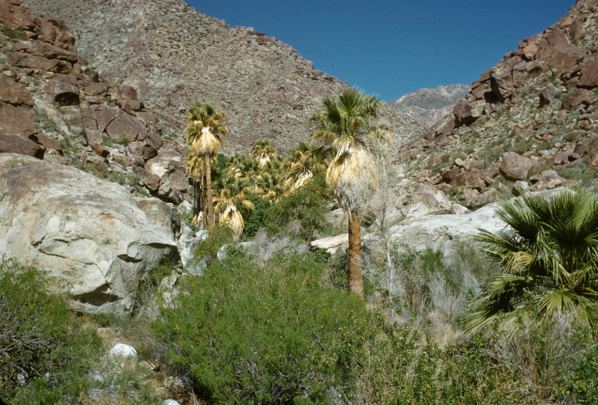 « back to search palm oasis, Palm Canyon, Borrego Date April 4, 1953 Media FormatSlide PhotographerHugh Dearing Location Information Place Name Borrego Palm Canyon Country: United States State: California County: San Diego Natural Landscapes Plant Community Palm Oasis Terrain Canyons/Arroyos Image & Format Details Decade1950s Photo OrientationLandscape Image & Format Tags Color photograph Collection Hugh and Margaret Dearing Collection Index NumberSL_15557 Film Type Kodachrome