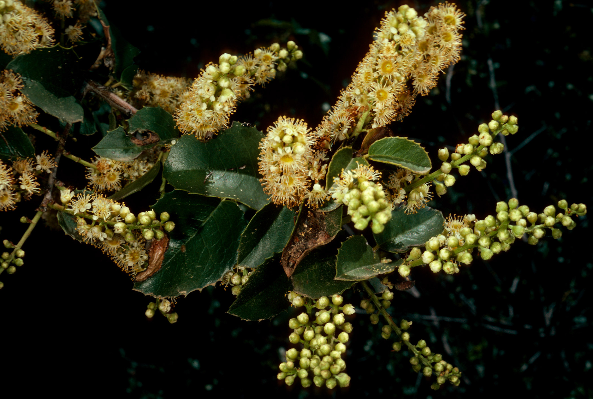 Prunus ilicifolia, West Camino Cielo, Santa Barbara County
