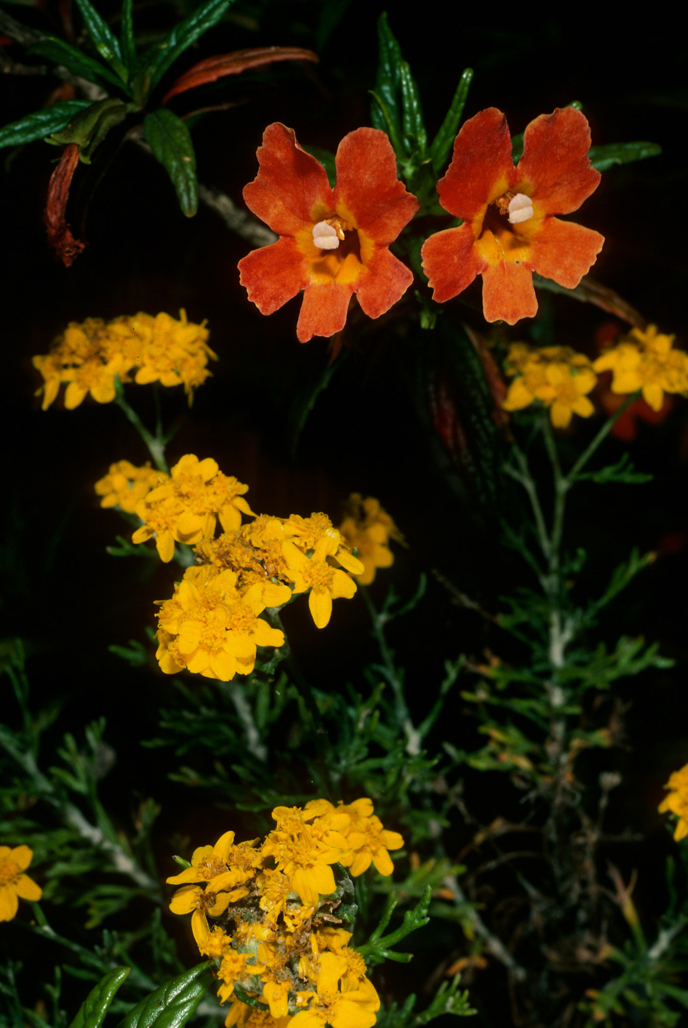 Santa Cruz Island, Mimulus longiflorus x flemingii, Eriophyllum, upper Islay Canyon