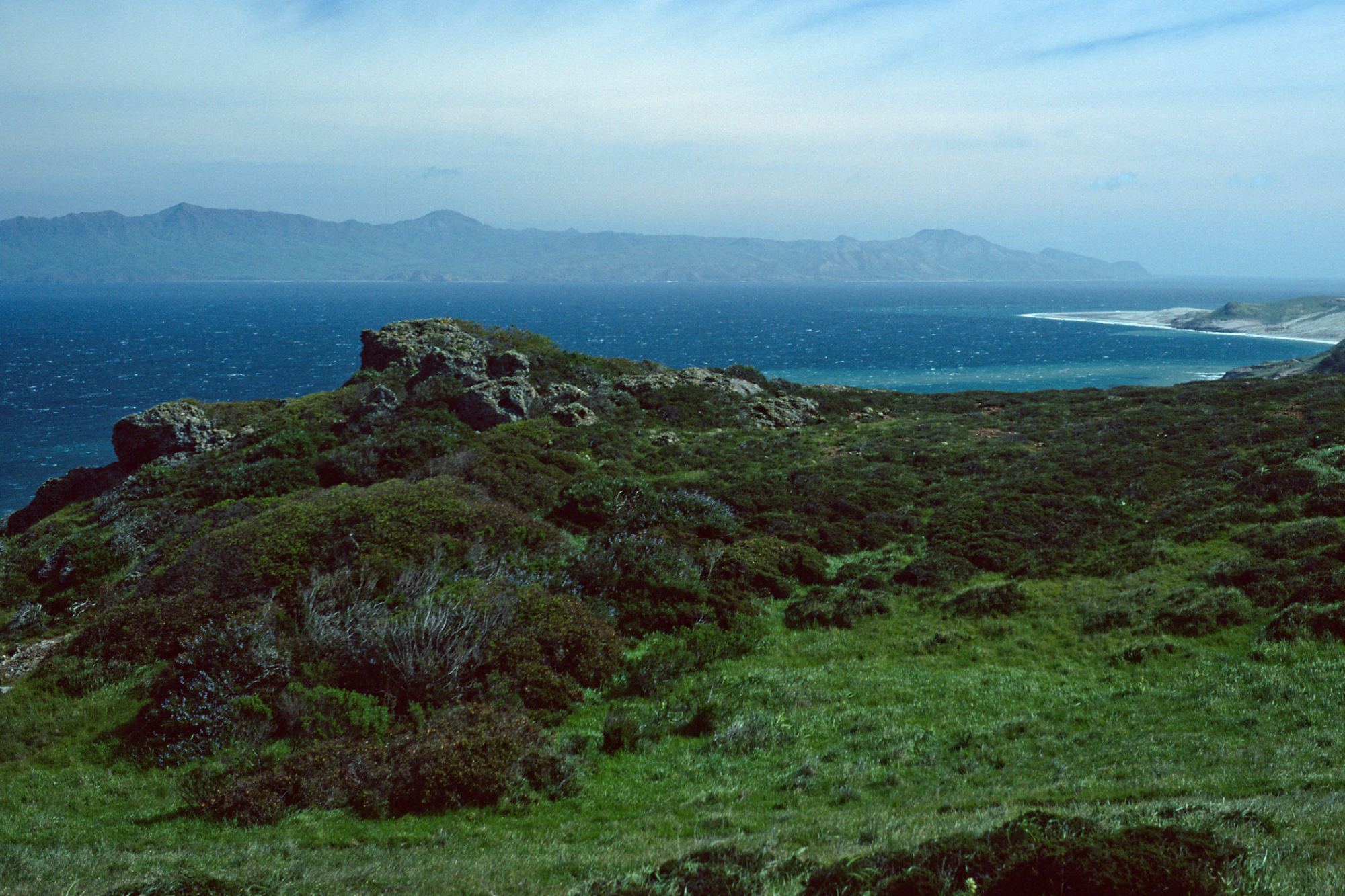 Santa Rosa Island, view of Skunk Point & Santa Cruz Island from upper road to Torrey Pines