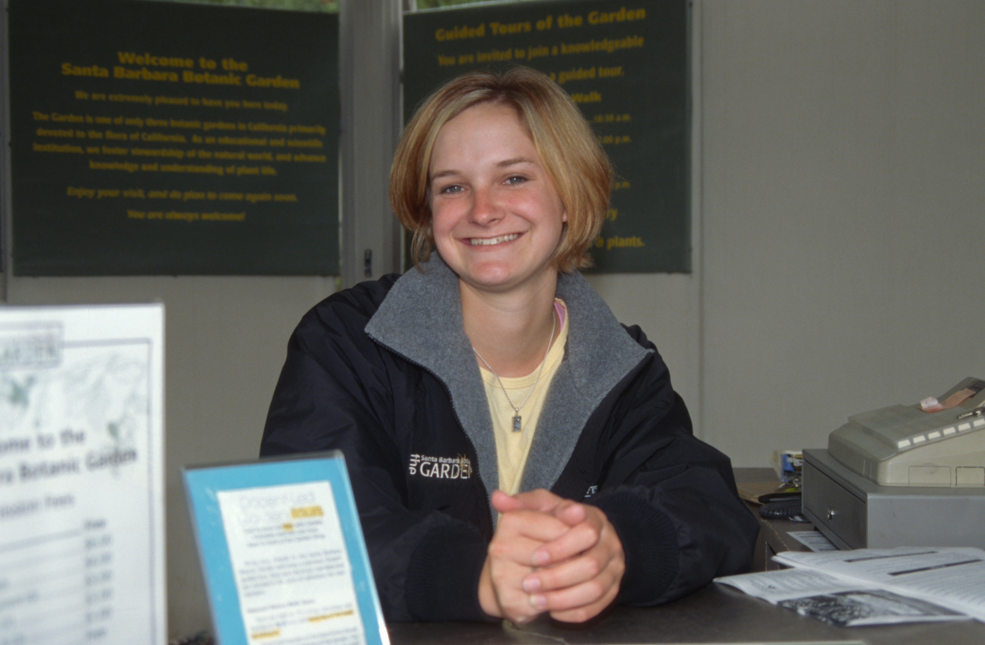« back to search SBBG People - Entrance Kiosk Date June 9, 2003 Media FormatSlide PhotographerUnknown Location Information Place Name Santa Barbara Botanic Garden Country: United States State: California County: Santa Barbara Santa Barbara Botanic Garden Garden Building Depicted Kiosk - Entry General Subject Image & Format Details Decade2000s Image & Format Tags Color photograph Collection SBBG Library Archives Date is Processing Date Yes Index NumberSL_09753