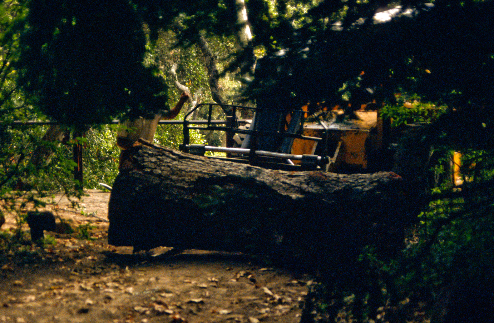 tree removal, tractor on Mission Dam