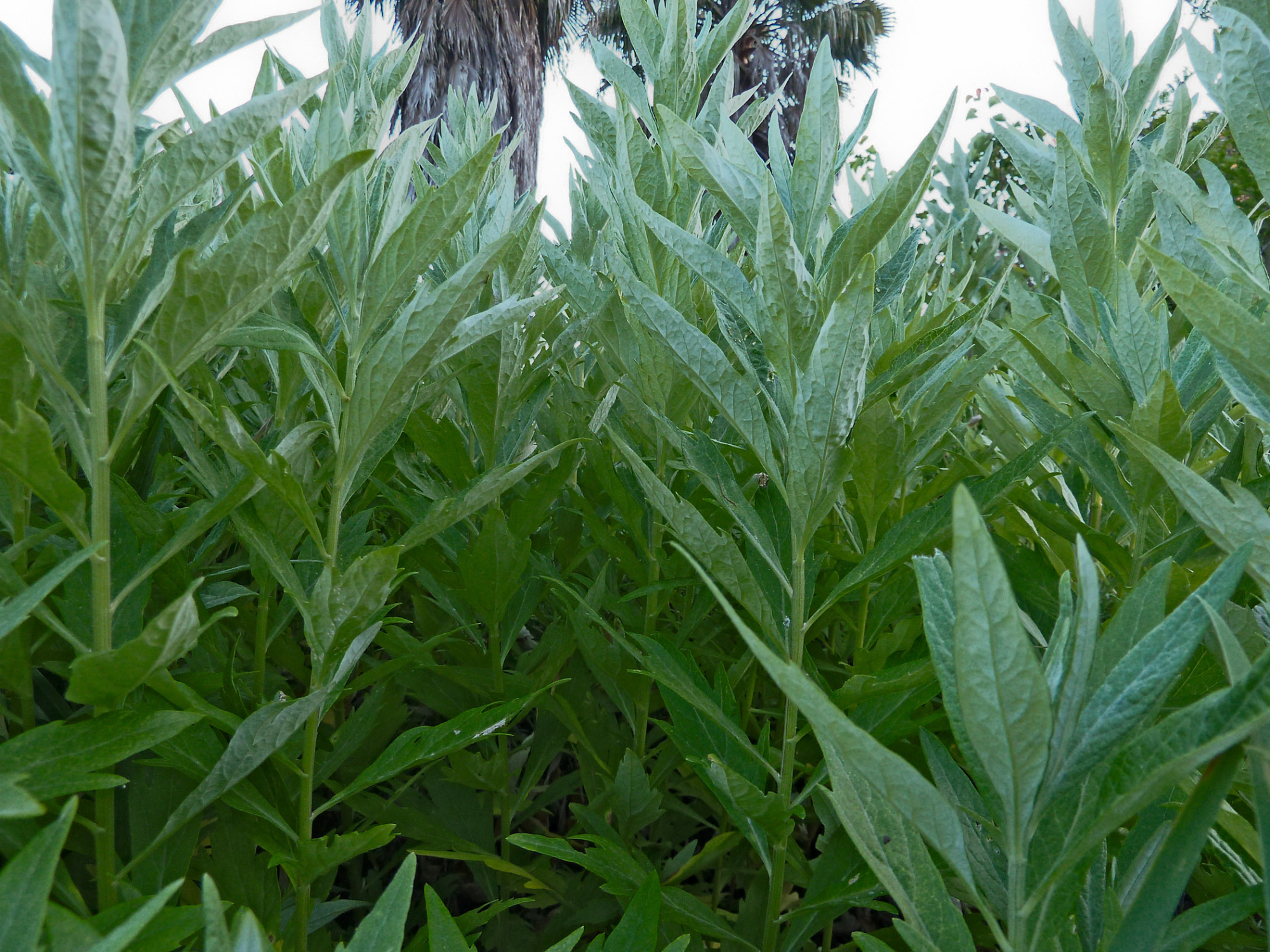 « back to search Artemisia douglasiana Date April 19, 2013 Media FormatBorn Digital PhotographerBruce Reed Location Information Country: United States Plant Information Plant(s) Pictured Mugwort (Artemisia douglasiana) Šmuwič (Barbareño)molush More Info Alternative Common NamesSagewort, Douglas', California Mugwort, Mugwort, Douglas' Sagewort Native StatusNative Plant Type/Growth Formperennial herb Blooming PeriodSummer, Spring, Fall Plant Communities Chaparral, Forest, Grassland, Wetland/Riparian, Woodland, Chaparral, Foothill Woodland, Valley Grassland, Yellow Pine Forest, Artemisia douglasiana Flower Color Yellow, Cream, White Primary Plant Part Leaves, Stems/Branches/Trunk Image & Format Details Decade2010s Photo OrientationLandscape Image & Format Tags Color photograph Collection SBBG Born Digital Image Collection Index NumberBD_34972