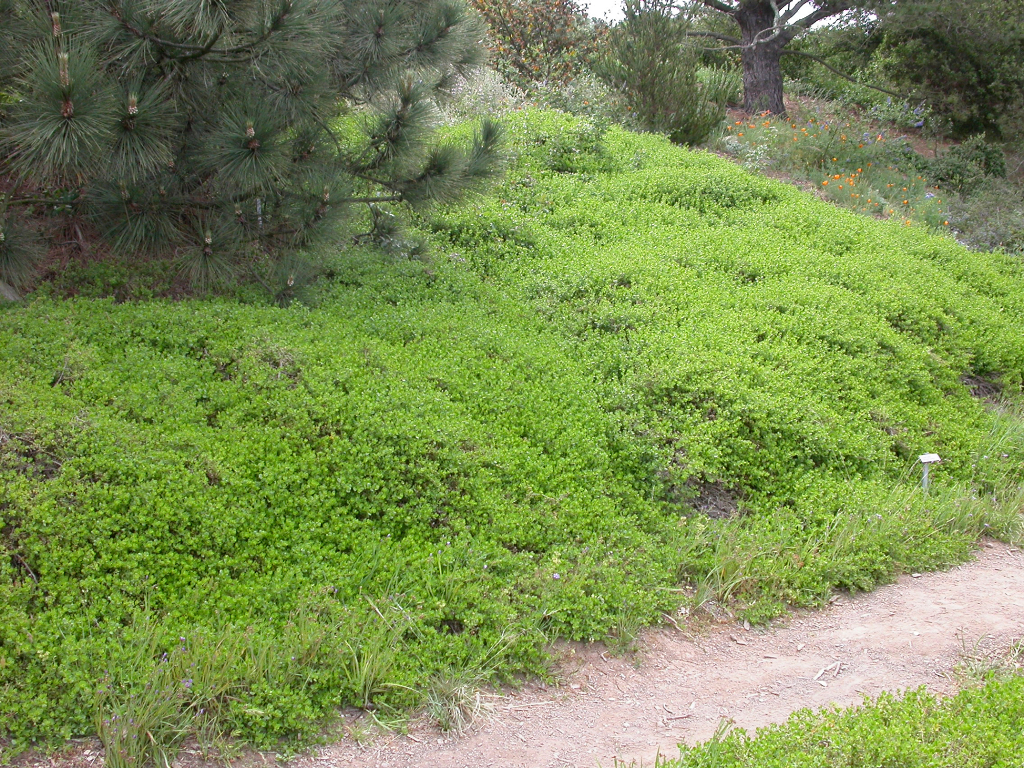 « back to search Baccharis pilularis, C 21-22 Date April 16, 2004 Media FormatBorn Digital PhotographerElizabeth (Betsy) Collins Location Information Place Name Santa Barbara Botanic Garden Country: United States State: California County: Santa Barbara Plant Information Plant(s) Pictured Coyote Brush (Baccharis pilularis) More Info Alternative Common NamesBush, Coyote | Brush, Coyote, Coyotebrush Native StatusNative Plant Type/Growth FormShrub Blooming PeriodSpring, Winter, Summer, Fall Plant Communities Chaparral, Baccharis pilularis, Forest, Woodland, Chaparral, Closed-Cone Pine Forest, Coastal Sage Scrub, Coastal Strand, Foothill Woodland, Mixed Evergreen Forest, Northern Coastal Scrub Flower Color Yellow, Cream, White Primary Plant Part Whole Plant Image & Format Details Decade2000s Photo OrientationLandscape Image & Format Tags Color photograph Collection SBBG Born Digital Image Collection Index NumberBD_02964