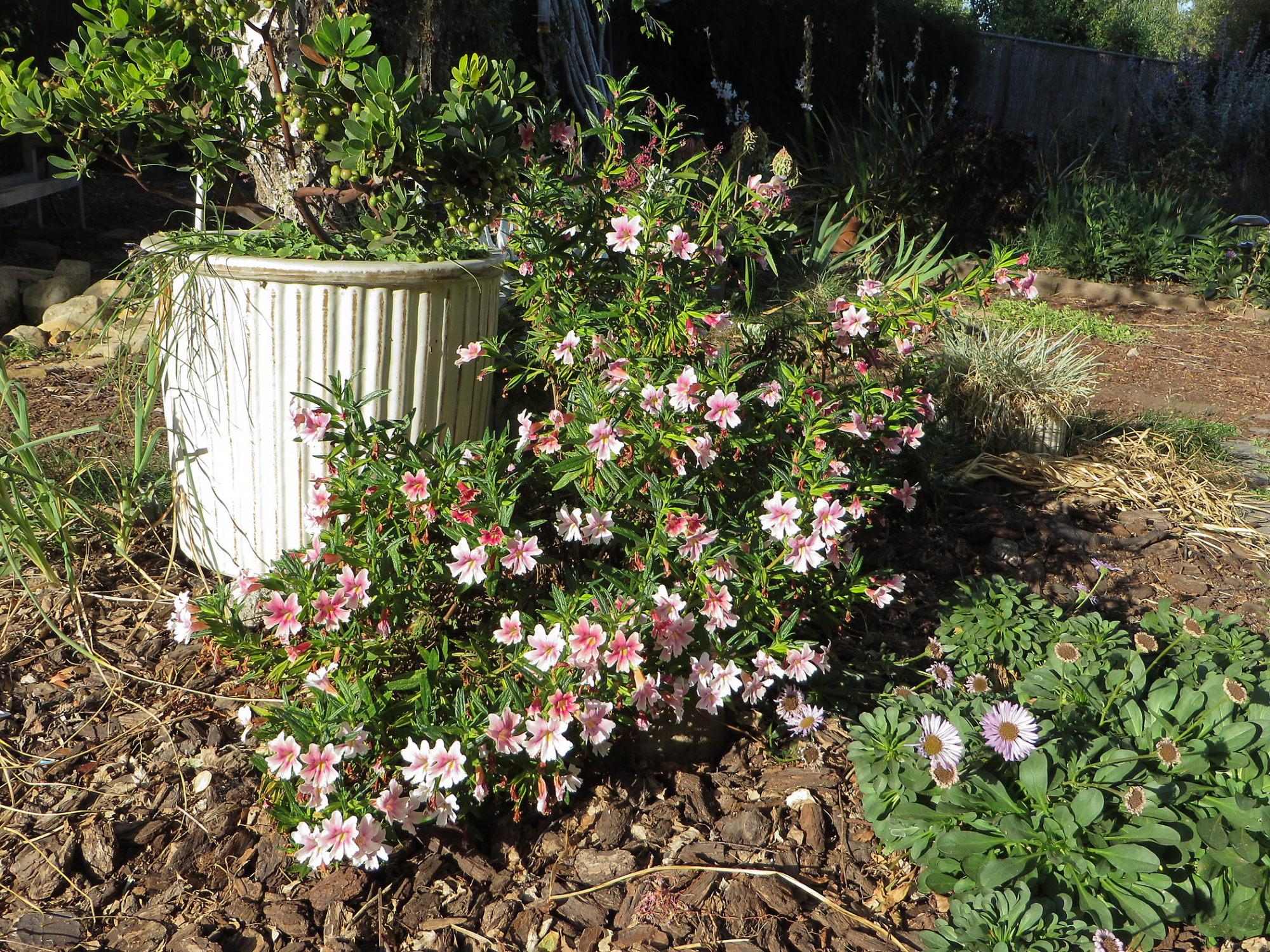 « back to search Betsy's Garden, Mimulus Jelly Bean Purple & Pink Date May 7, 2014 Media FormatBorn Digital PhotographerElizabeth (Betsy) Collins Location Information Place Name Santa Barbara Botanic Garden Country: United States State: California County: Santa Barbara Plant Information Plant(s) Pictured (Mimulus 'Jelly Bean Lava') Image & Format Details Decade2010s Photo OrientationLandscape Image & Format Tags Color photograph Collection SBBG Born Digital Image Collection Index NumberBD_27196