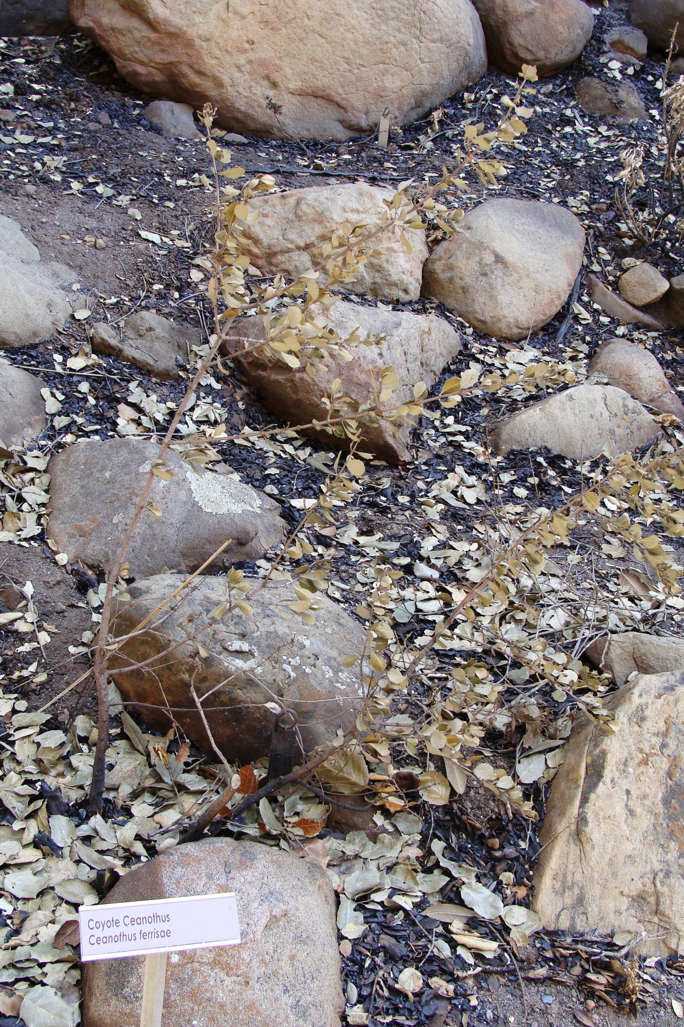burned Ceanothus ferrisiae plant, after the Jesusita Fire