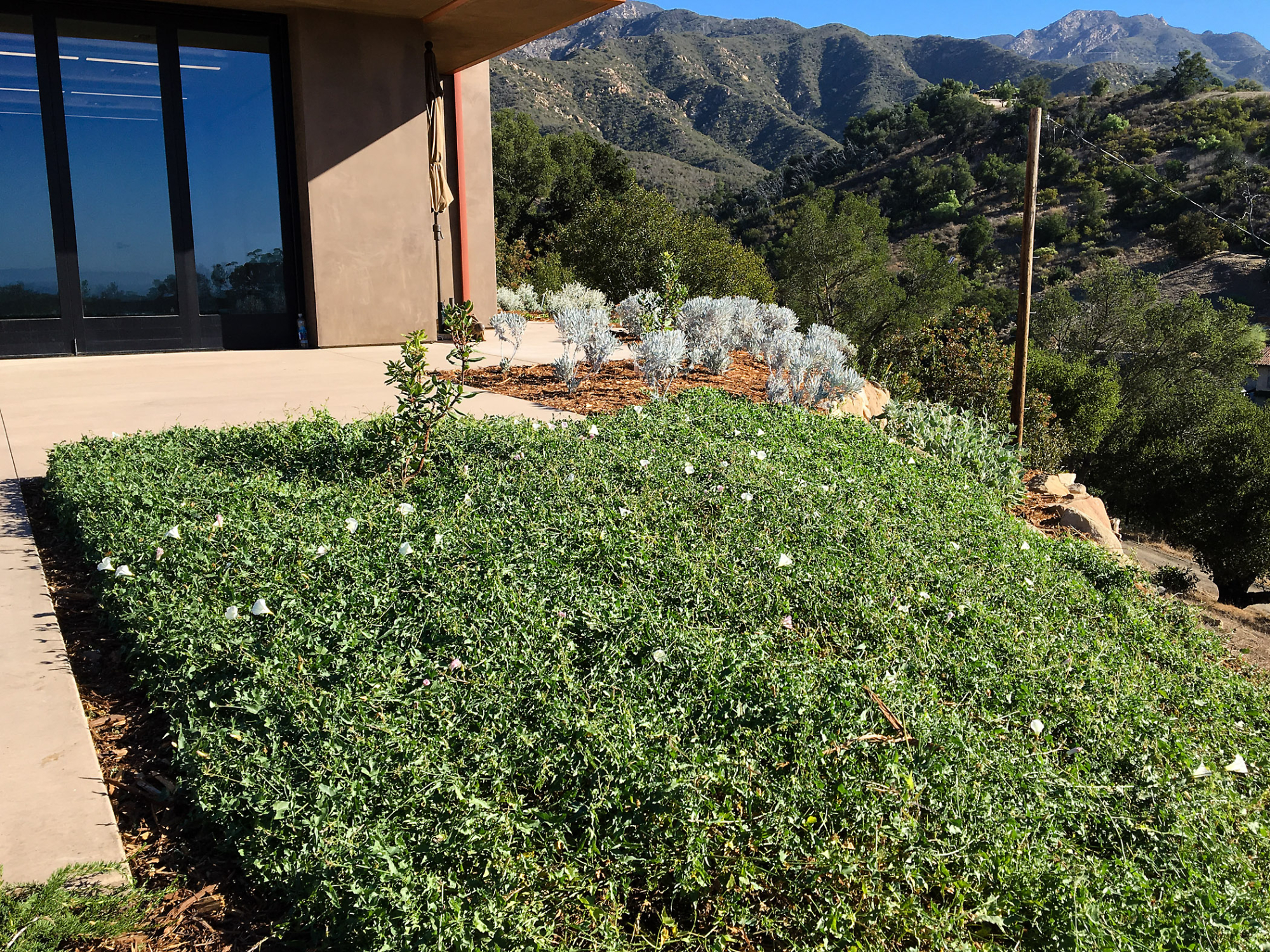Calystegia Anacapa Pink as groundcover at the Island View Garden