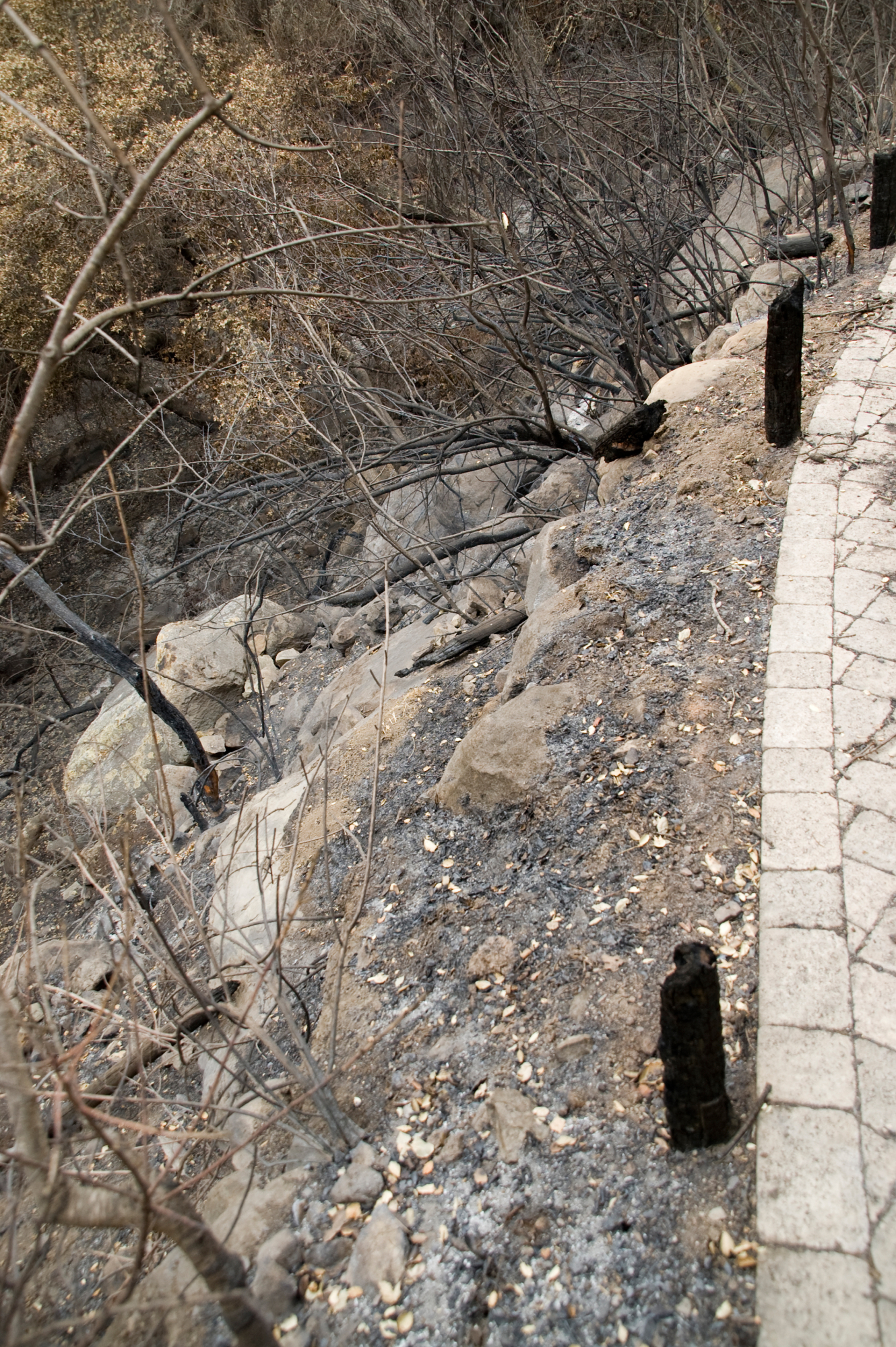 « back to search canyon slope below Campbell Trail, after the Jesusita Fire Date May 25, 2009 Media FormatBorn Digital PhotographerJohn Wardlaw Location Information Place Name Santa Barbara Botanic Garden Country: United States State: California County: Santa Barbara Santa Barbara Botanic Garden Garden Section/Display Campbell Trail, Canyon Planted Landscapes/Horticultural Uses Garden Name (not SBBG)Santa Barbara Botanic Garden Hardscape Feature Fence/Gate/Railing, Path/Trail General Subject Subject Tags Fire: Burn Area Fire: Ash/Debris Image & Format Details Decade2000s Photo OrientationPortrait Image & Format Tags Color photograph Collection Jesusita Fire Index NumberBD_01188