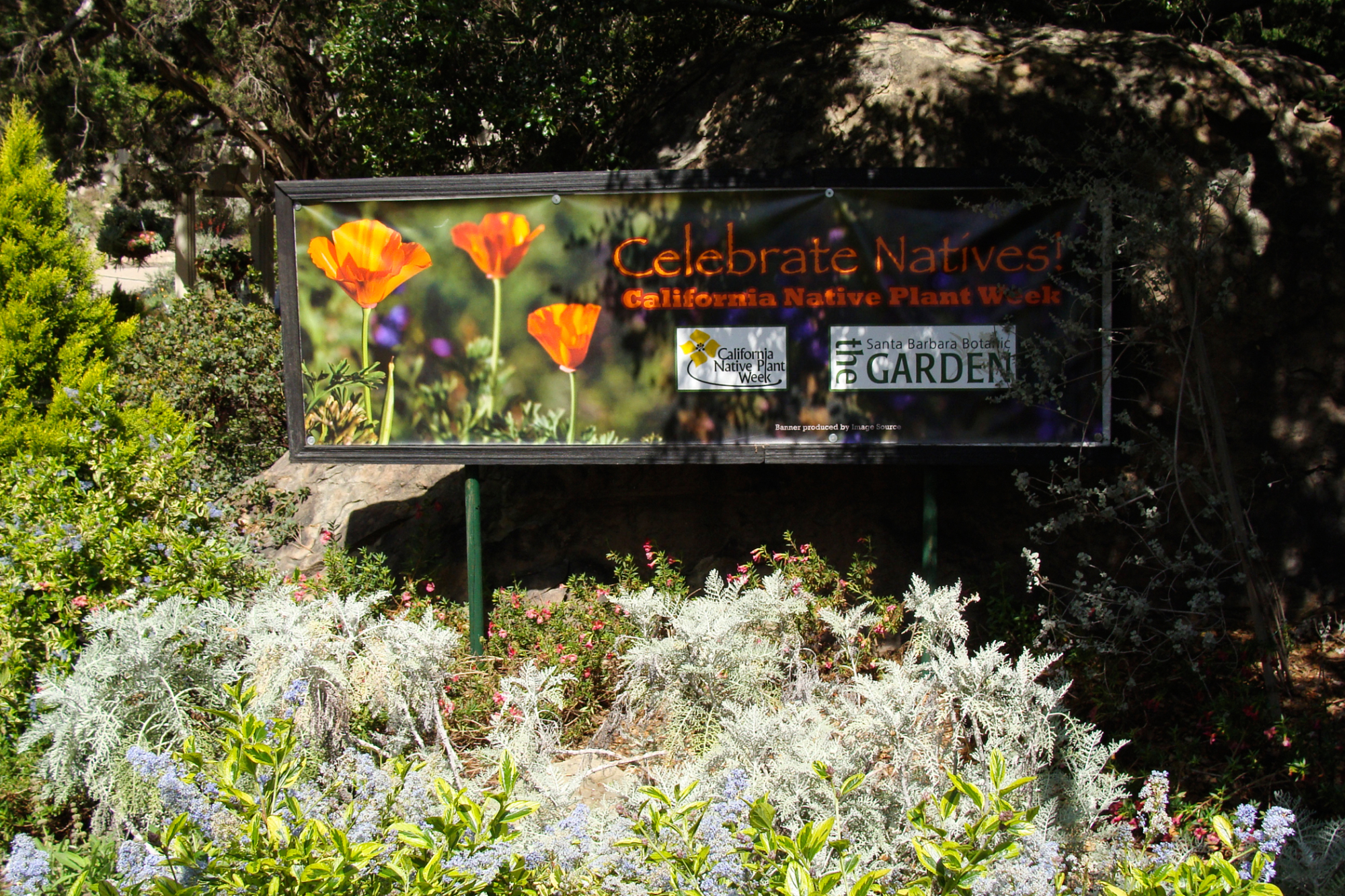 'Celebrate Natives, California Native Plant Week', 2011, banner at Garden Entrance boulders