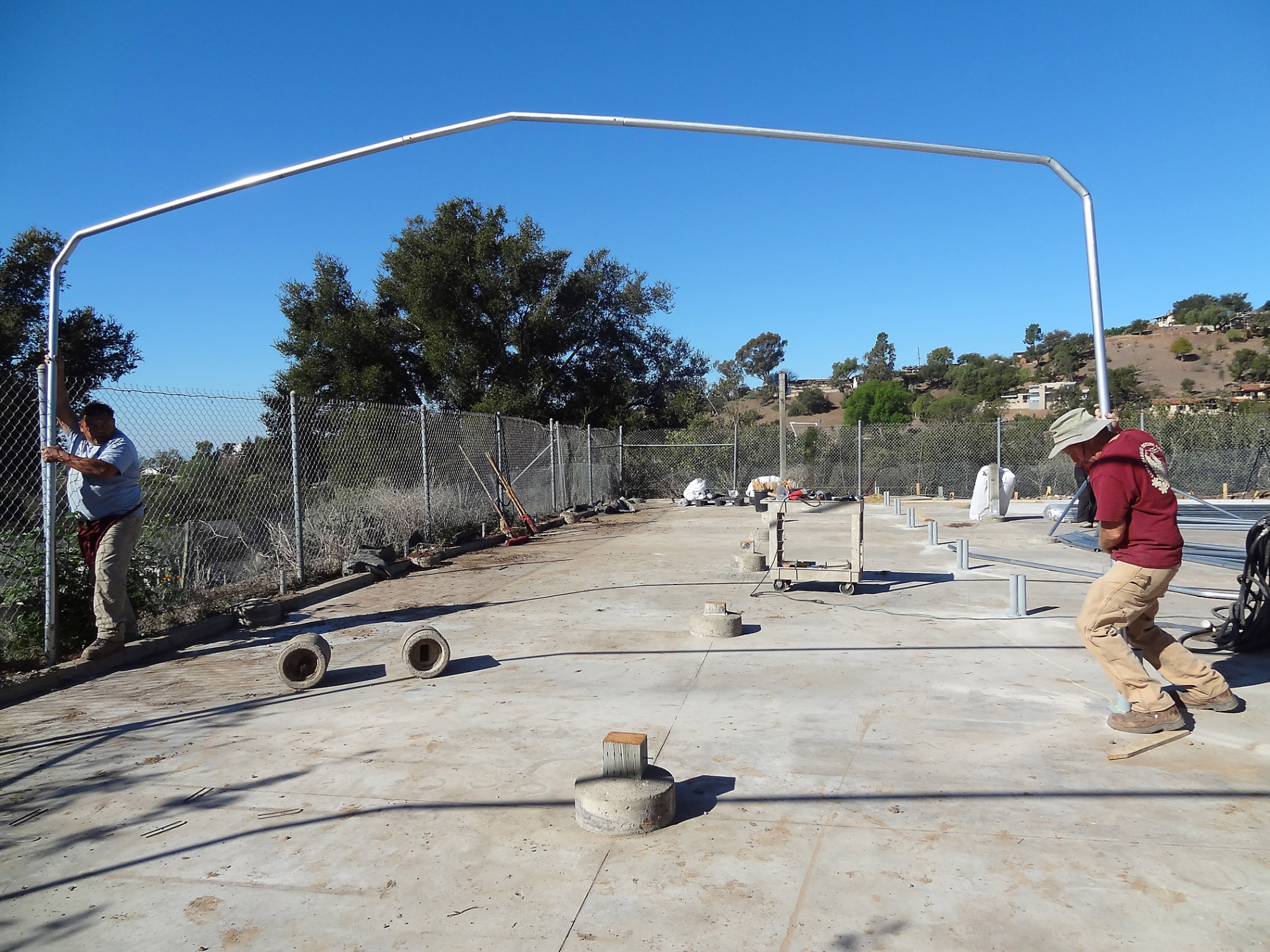 Construction at the Hort Unit, SBBG staff install the new shade structure, James Lechuga, Dave Kershaw